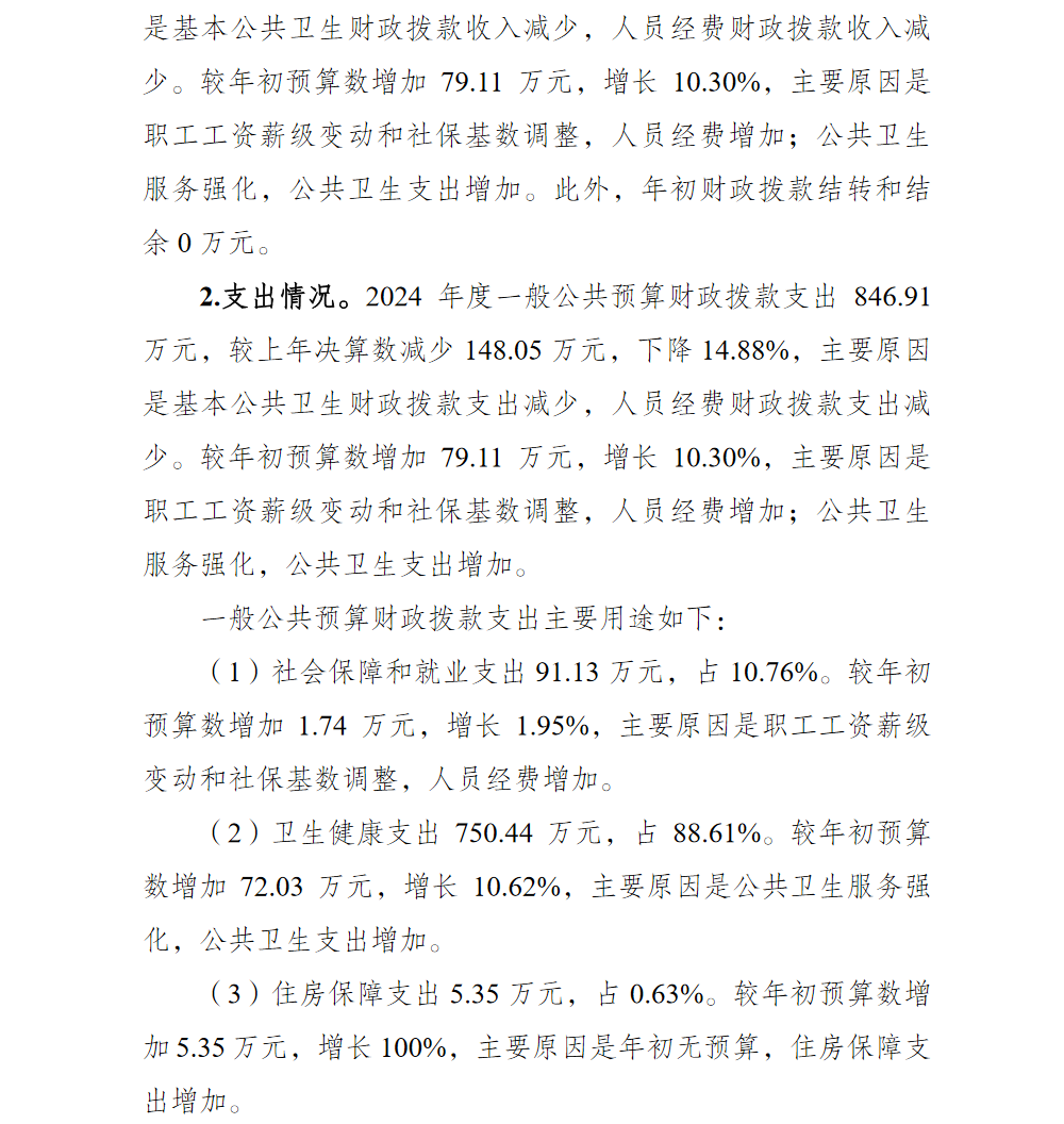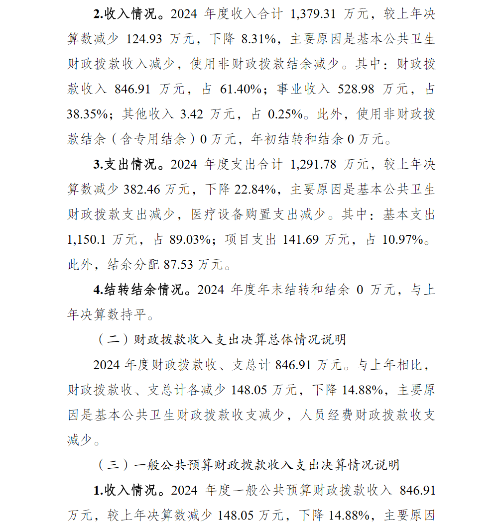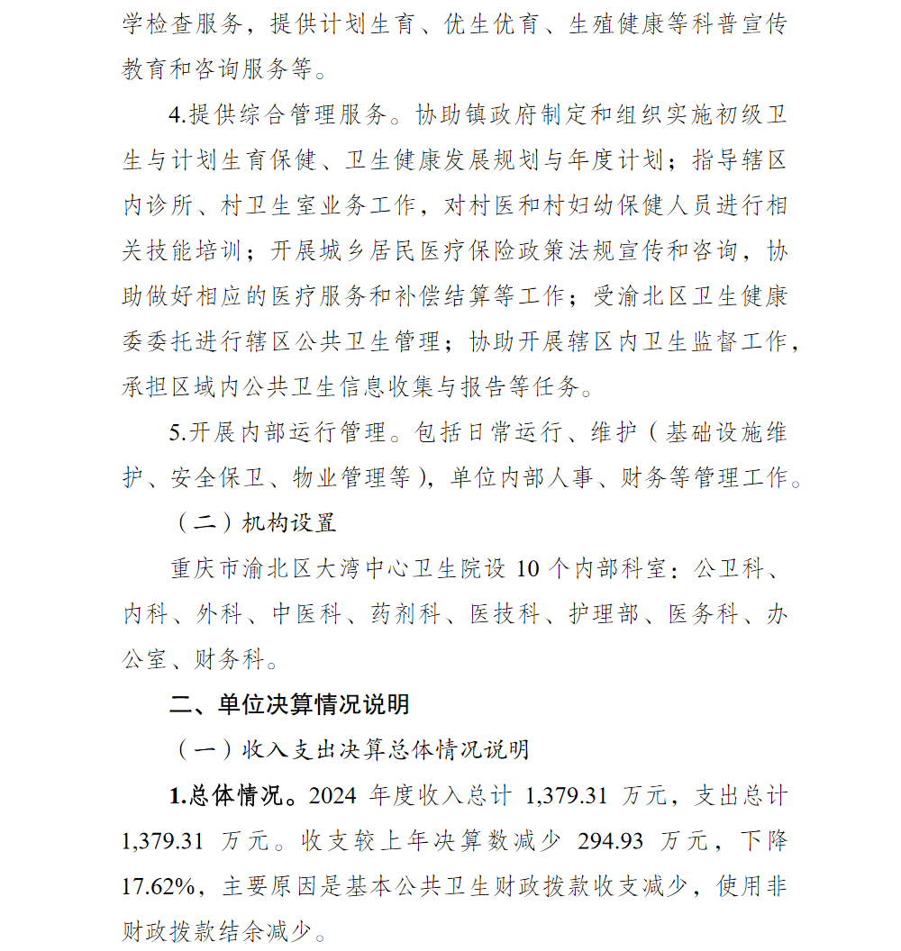 重庆市渝北区大湾中心卫生院2024年单位决算情况说明