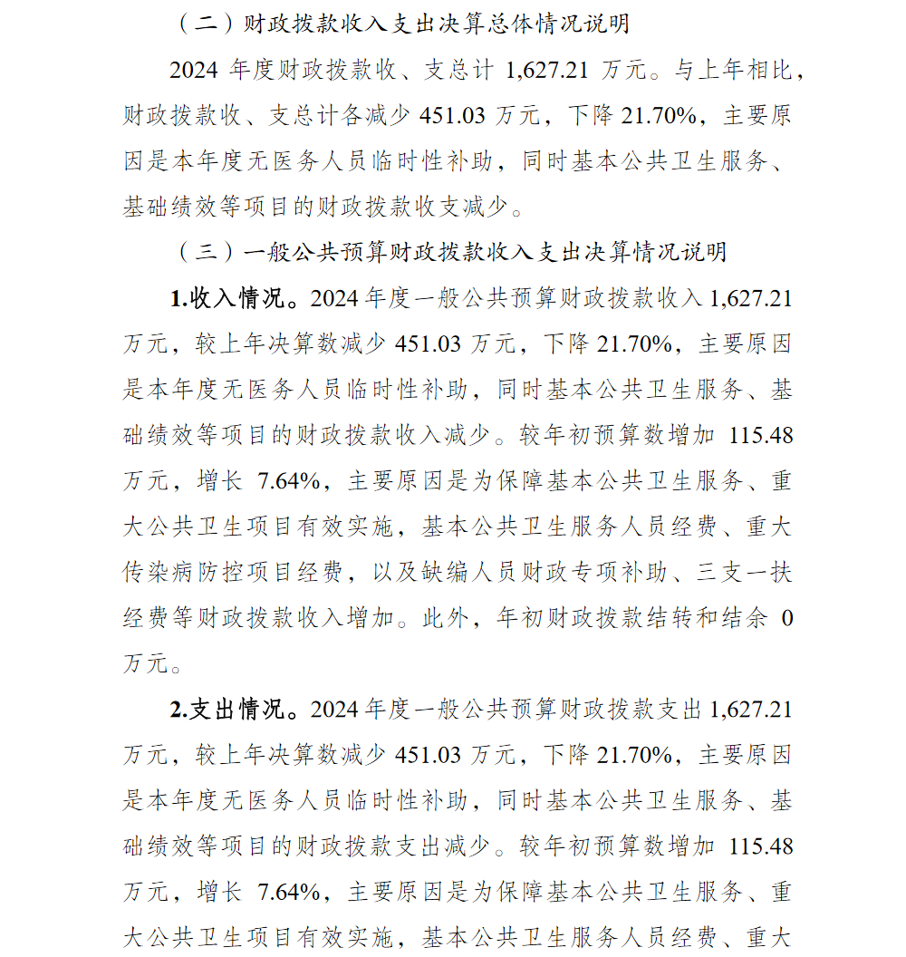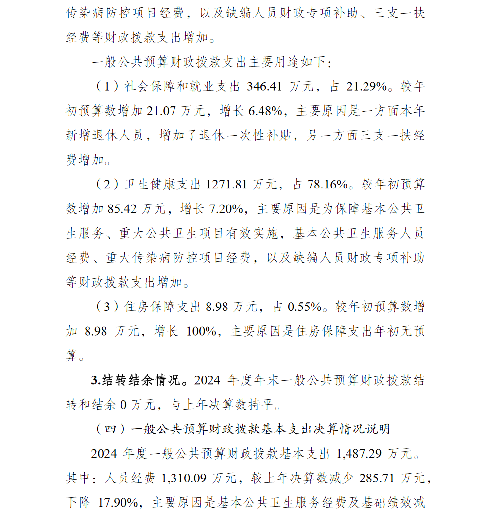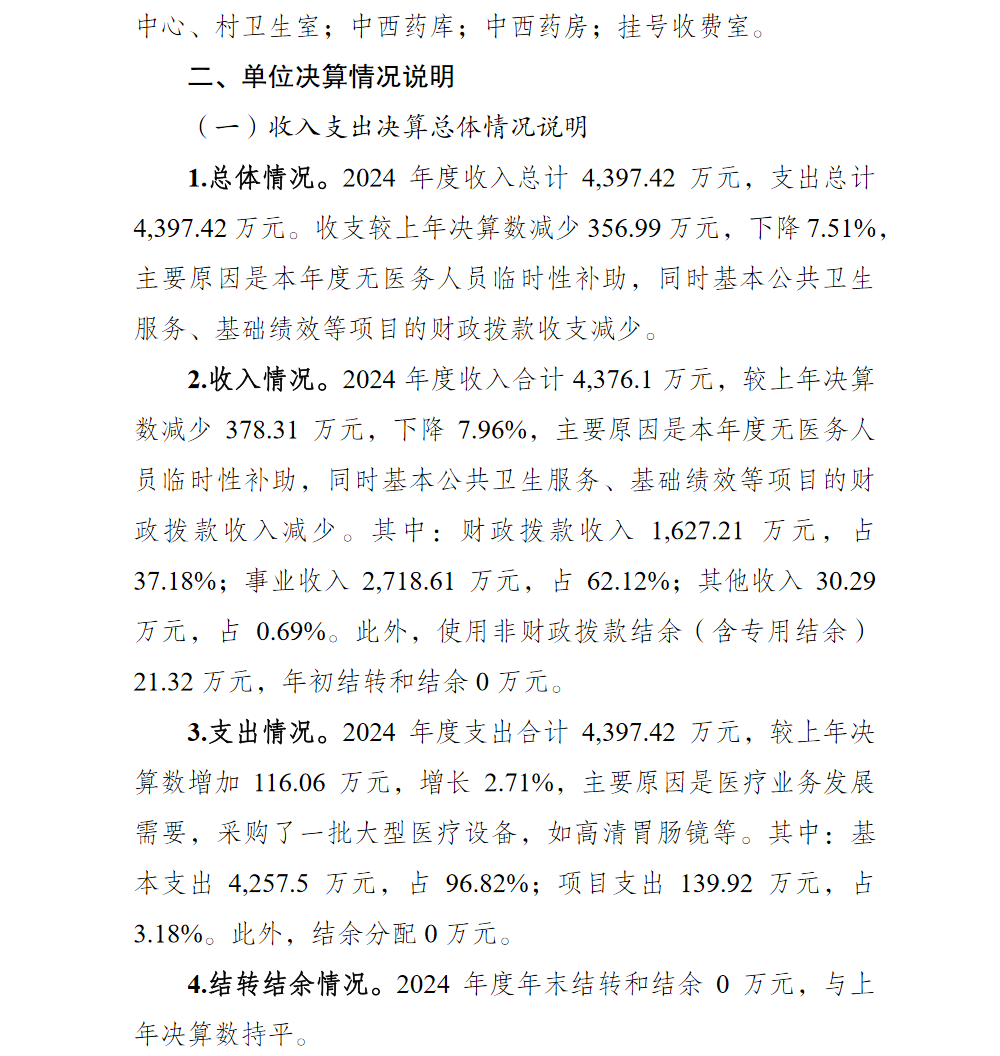 重庆市渝北区石船中心卫生院2024年单位决算情况说明