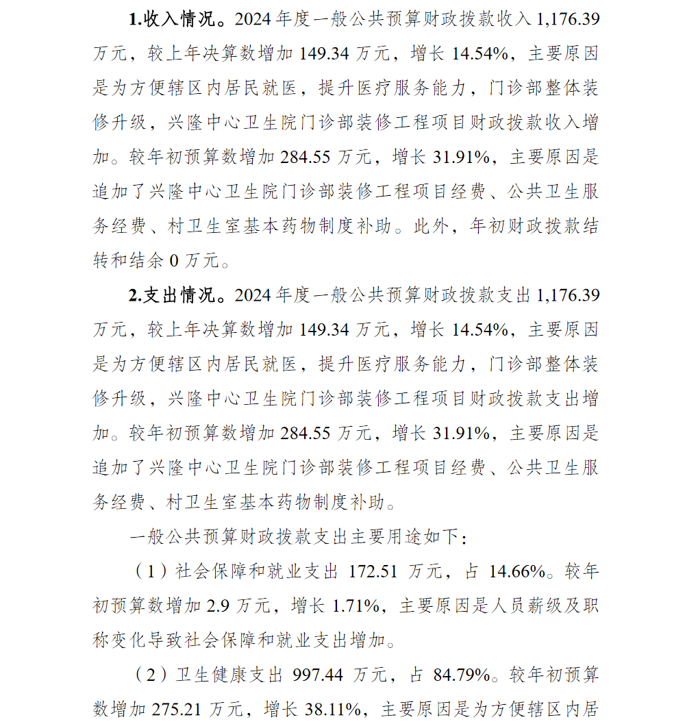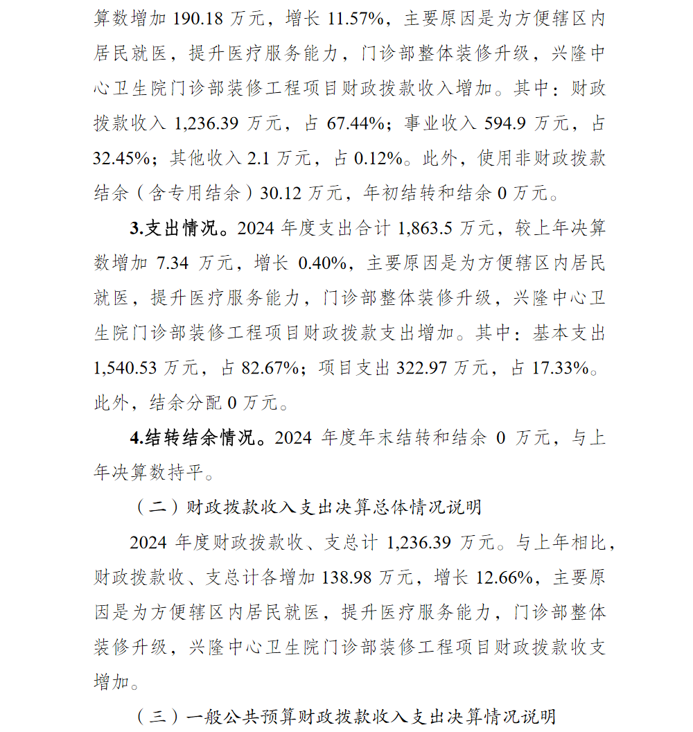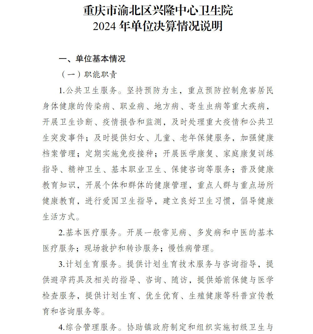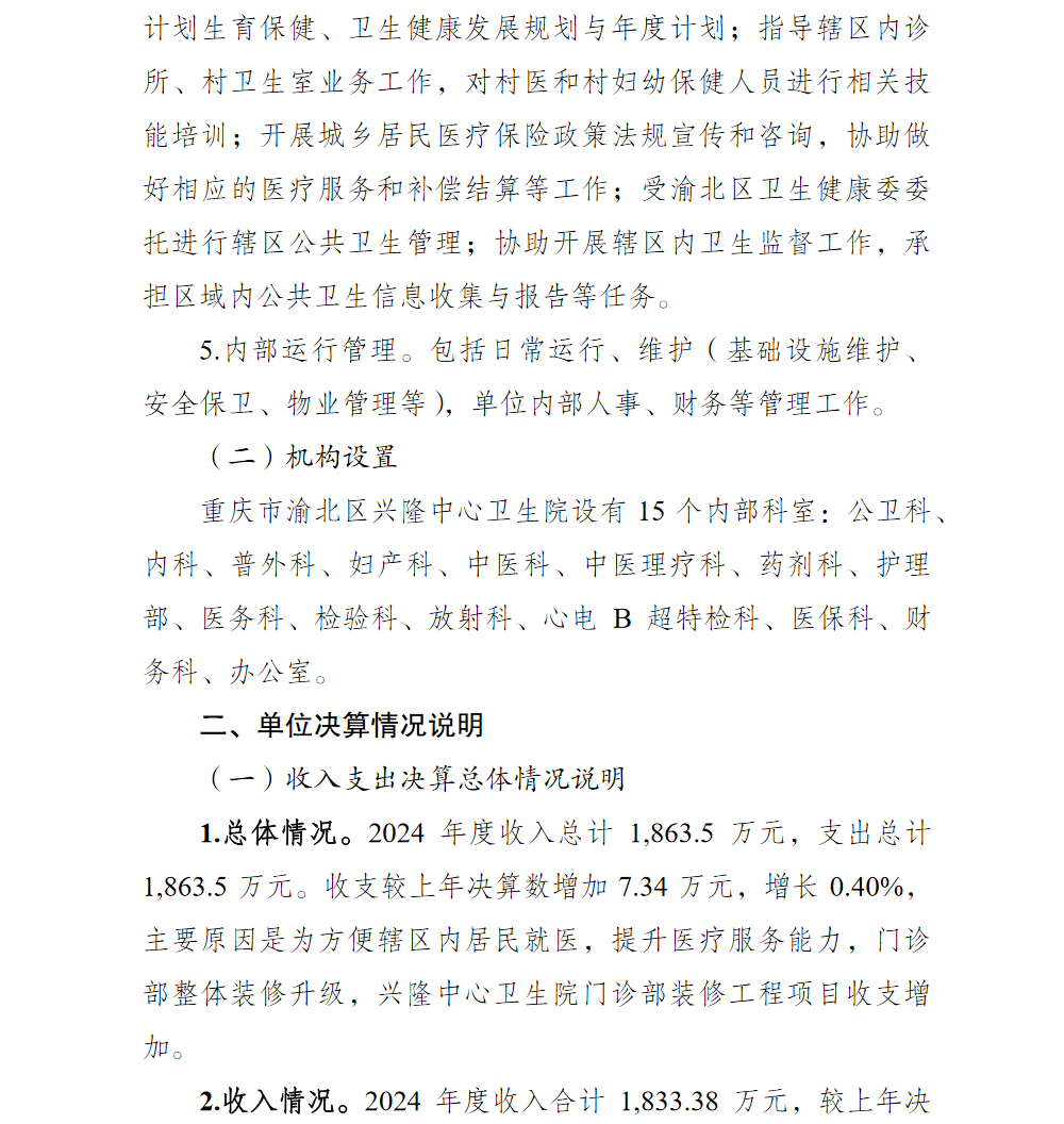 重庆市渝北区兴隆中心卫生院2024年单位决算情况说明