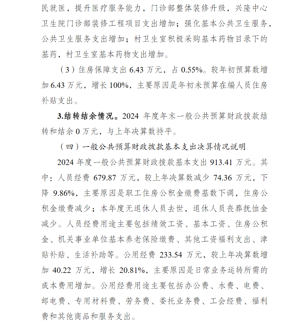 重庆市渝北区兴隆中心卫生院2024年单位决算情况说明及附表.pdf