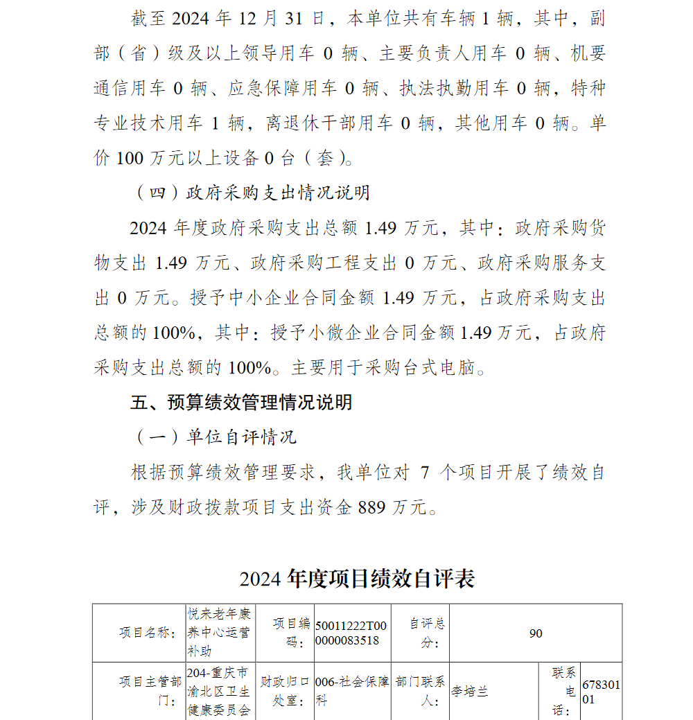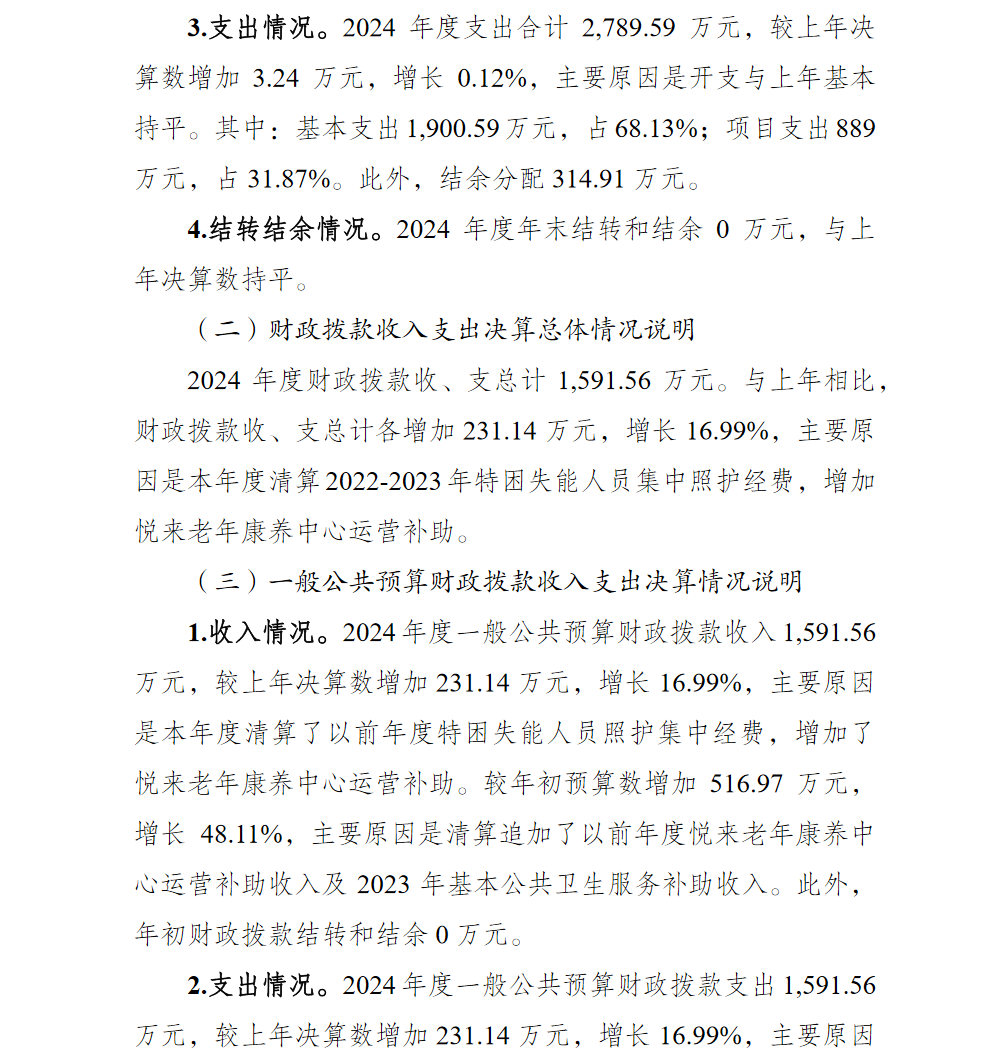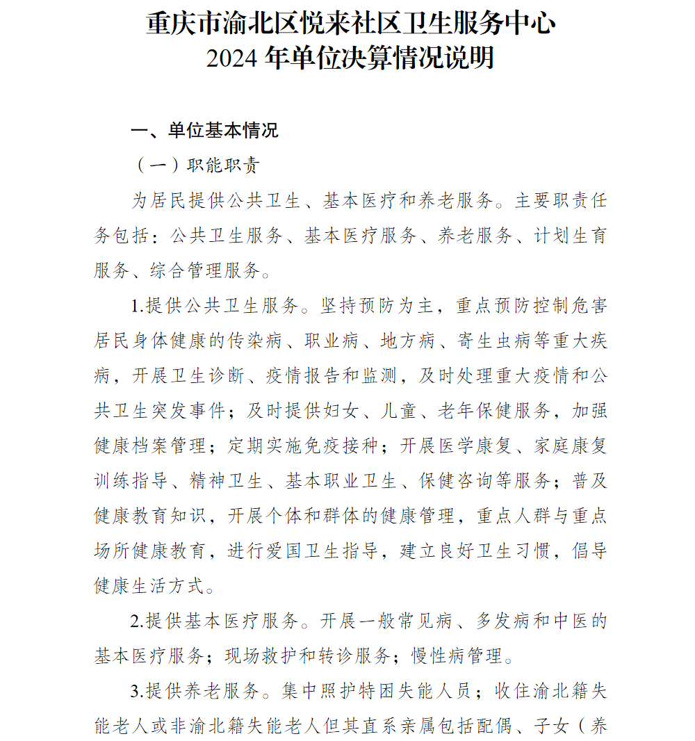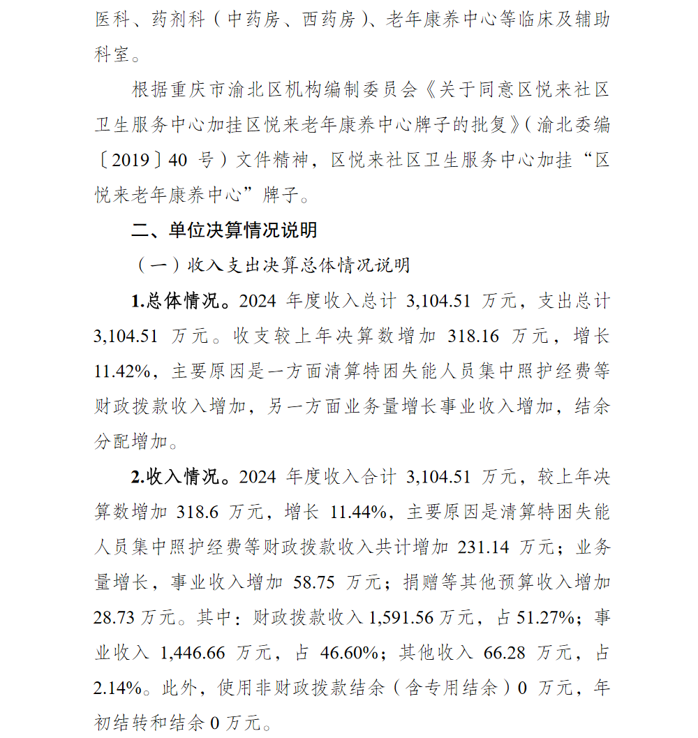 重庆市渝北区悦来社区卫生服务中心2024年单位决算情况说明