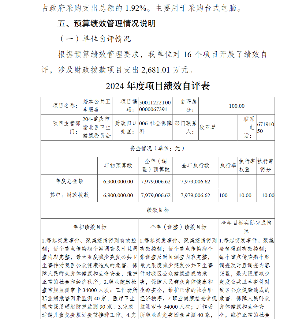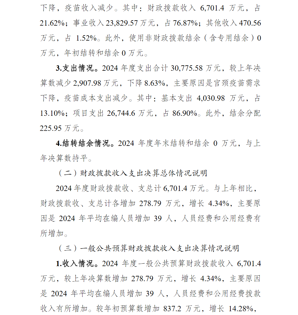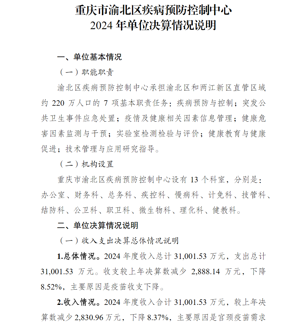 重庆市渝北区疾病预防控制中心2024年单位决算情况说明