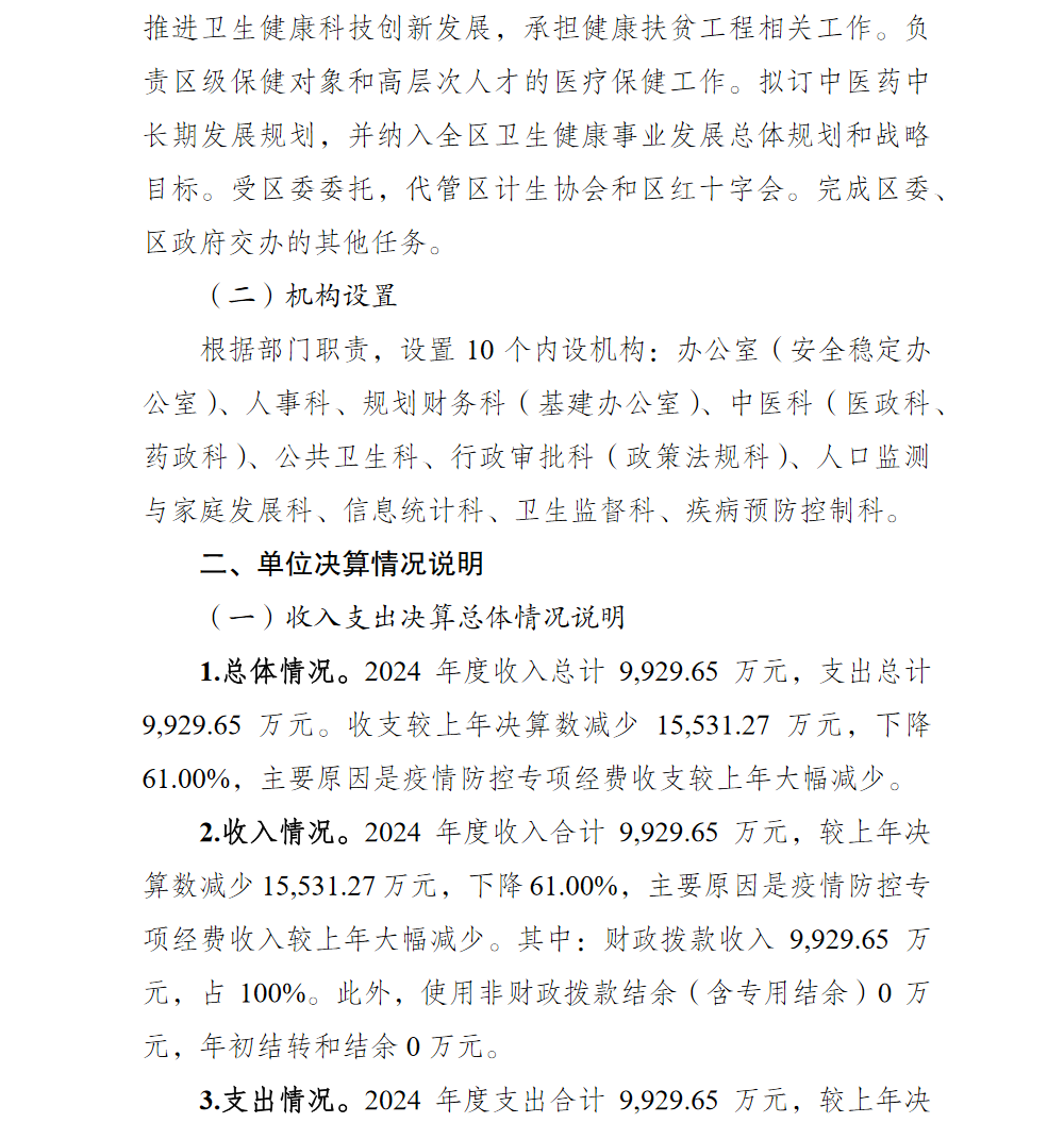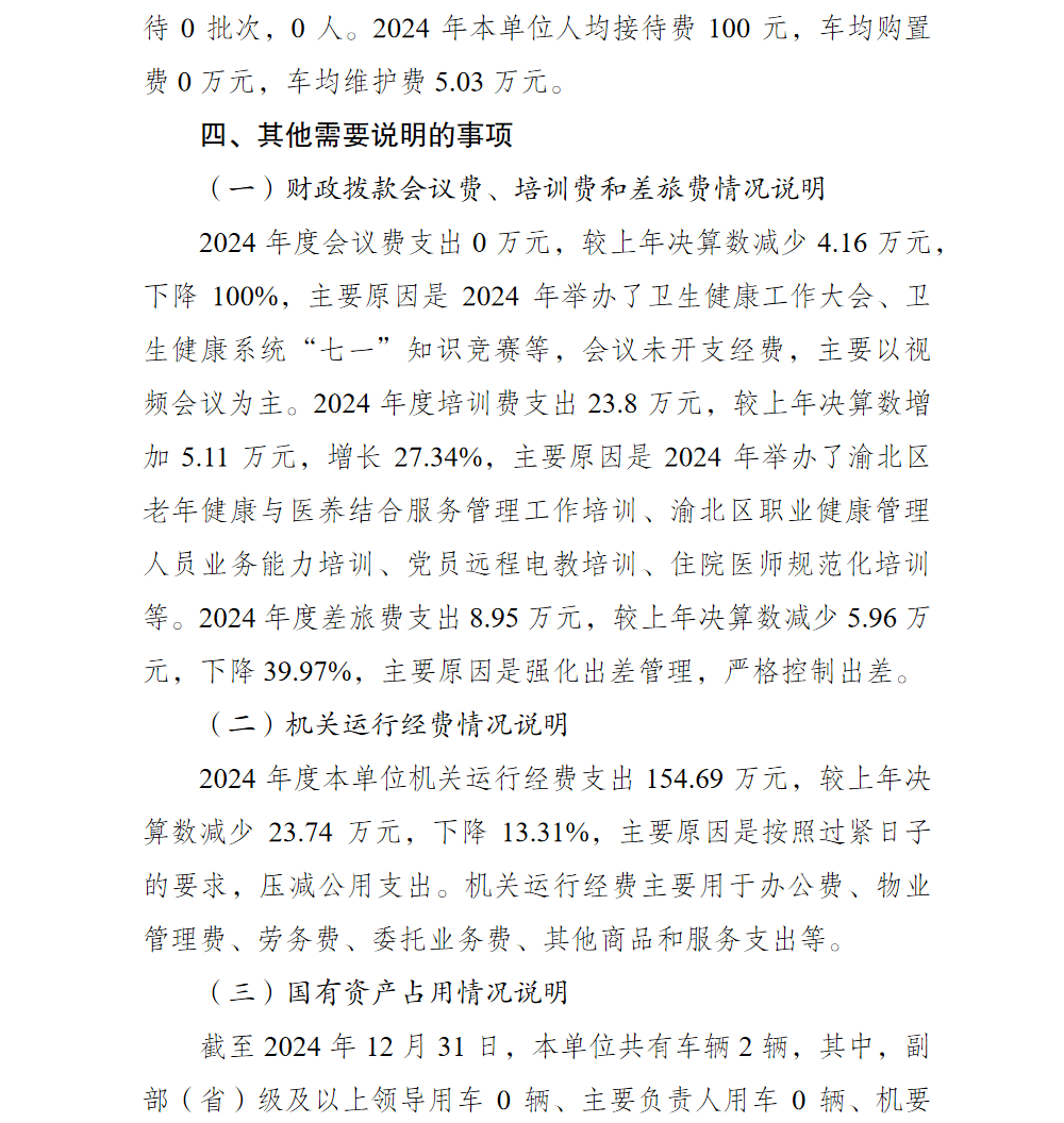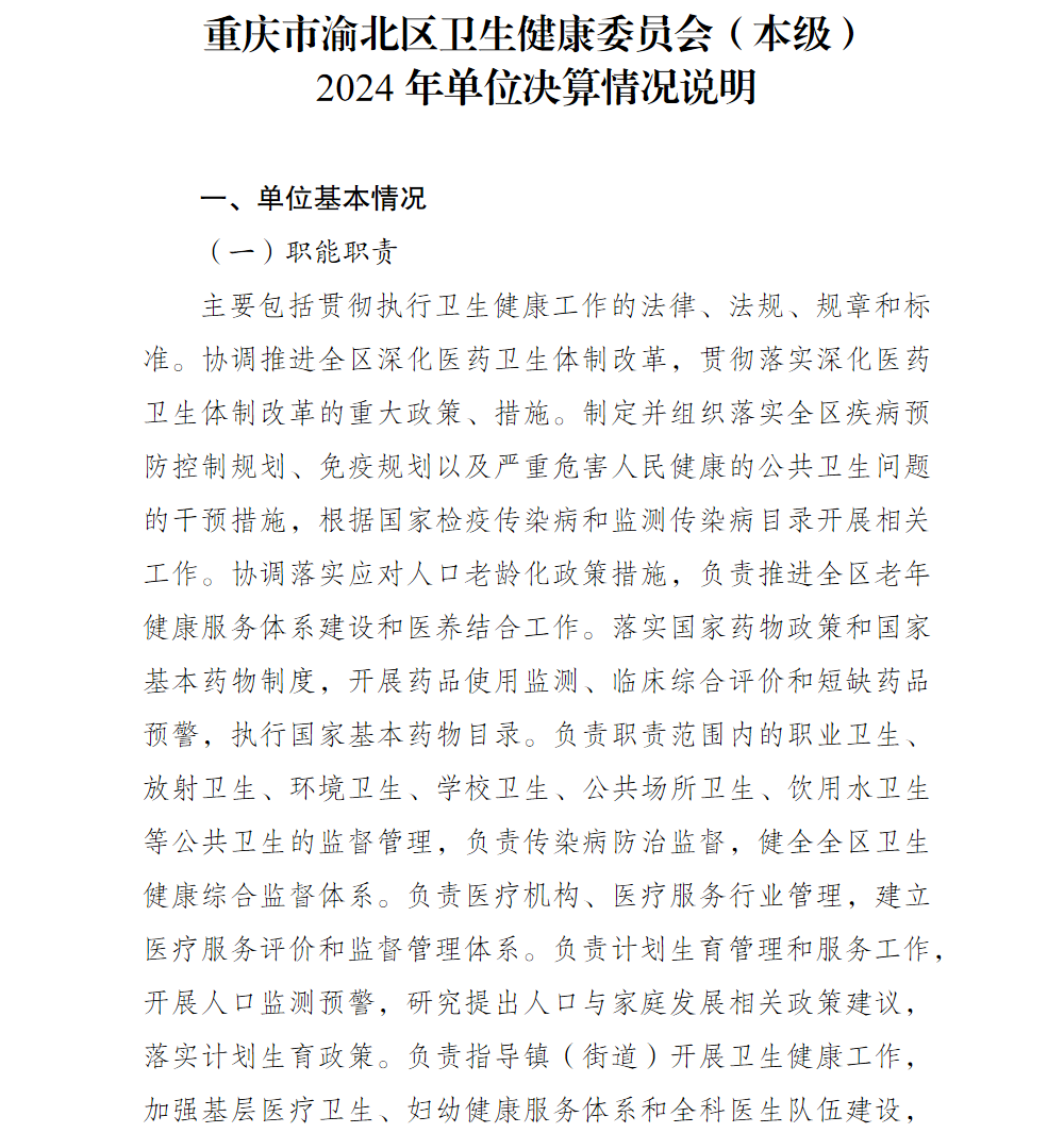 重庆市渝北区卫生健康委员会(本级)2024年单位决算情况说明