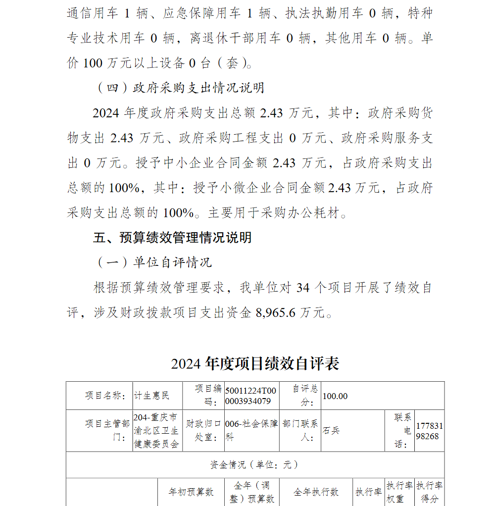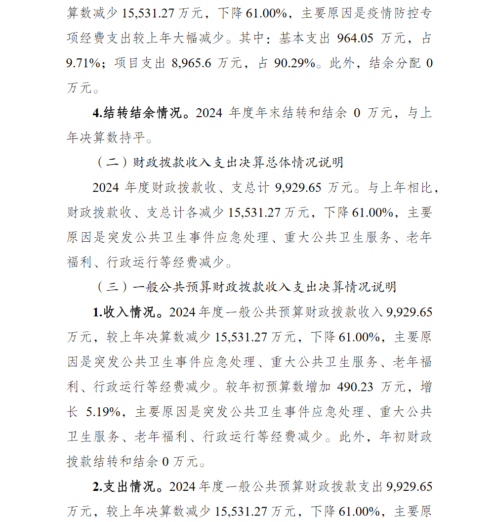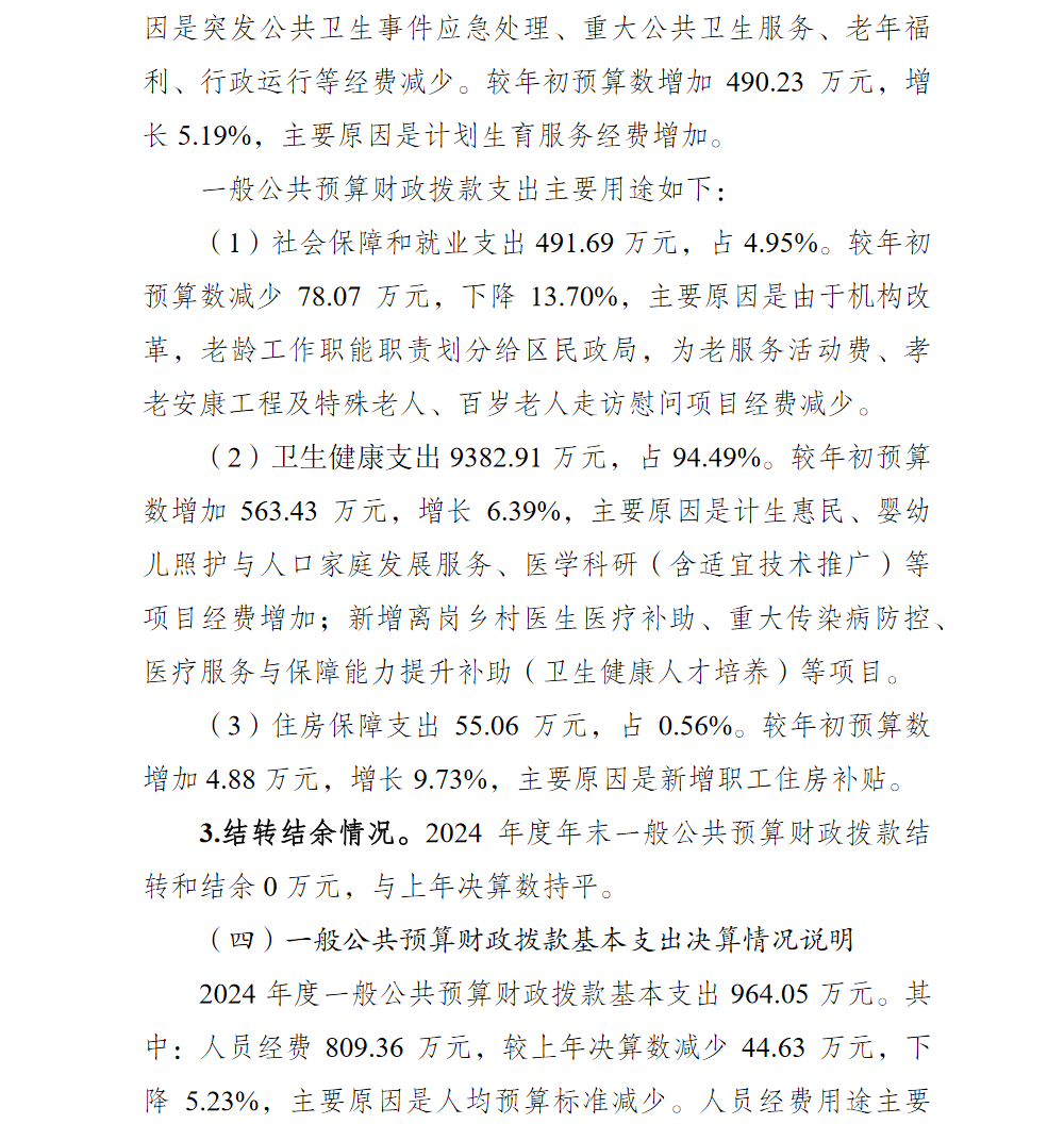 重庆市渝北区卫生健康委员会(本级)2024年单位决算情况说明
