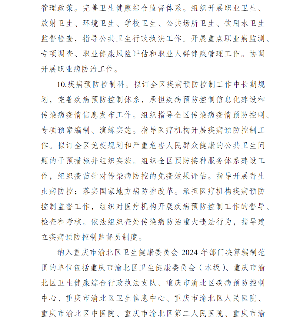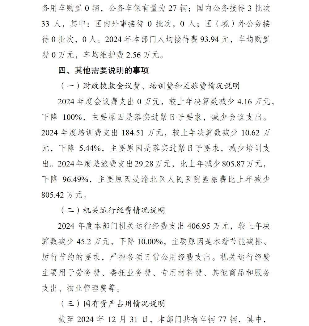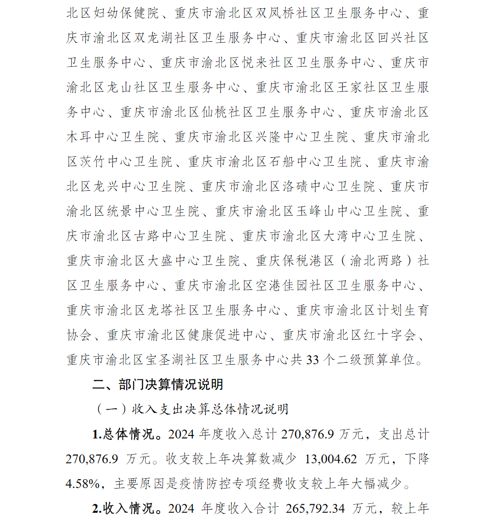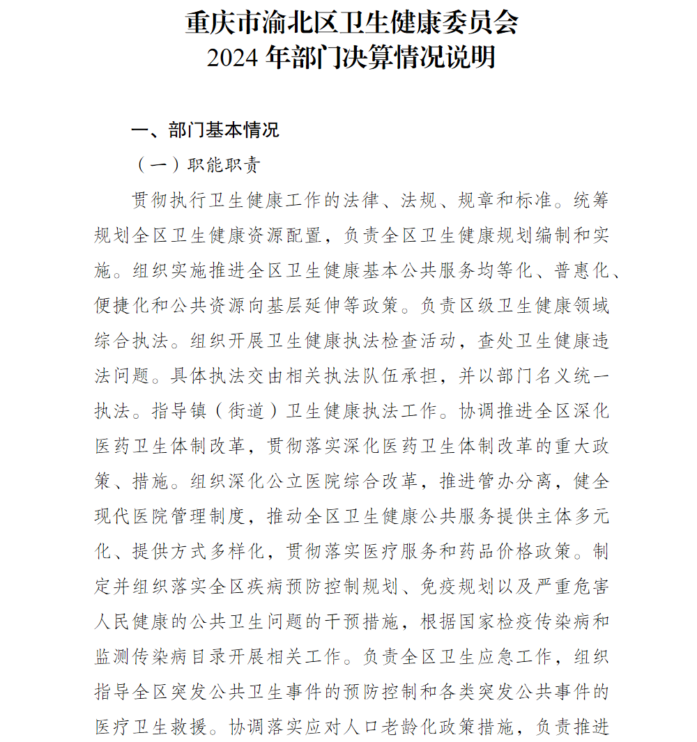 重庆市渝北区卫生健康委员会2024年部门决算情况说明
