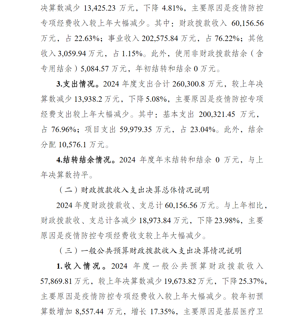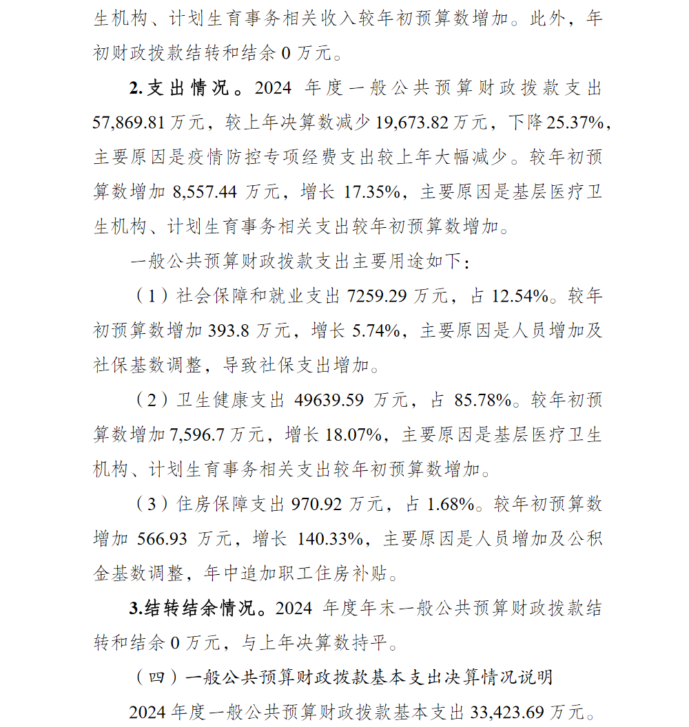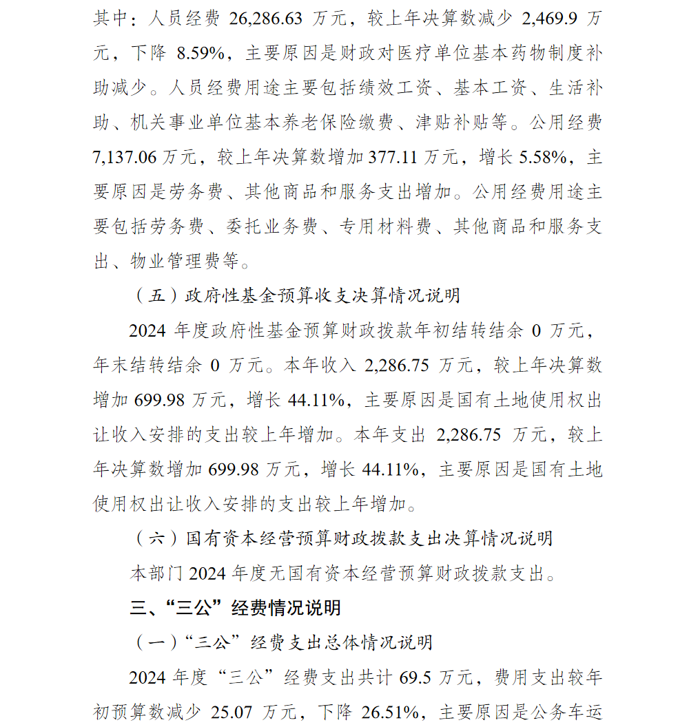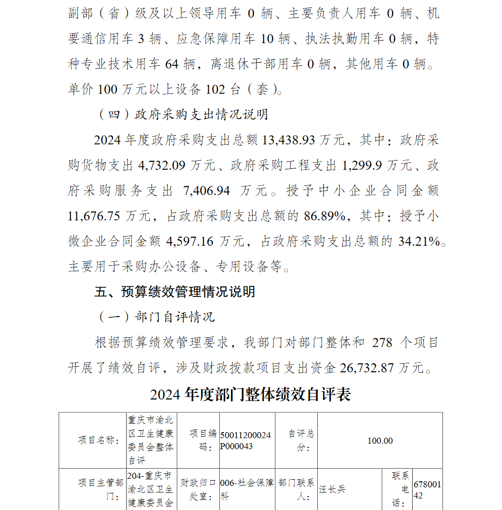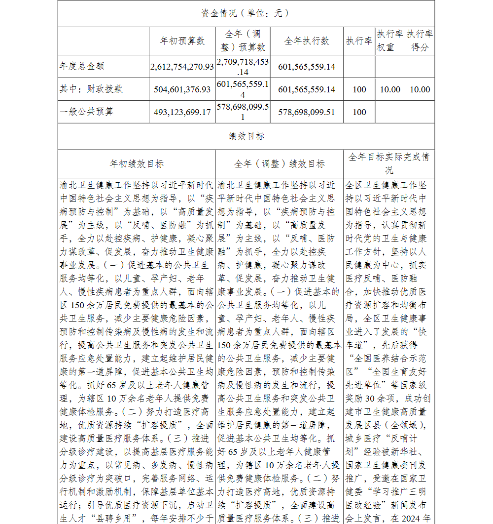 重庆市渝北区卫生健康委员会2024年部门决算情况说明
