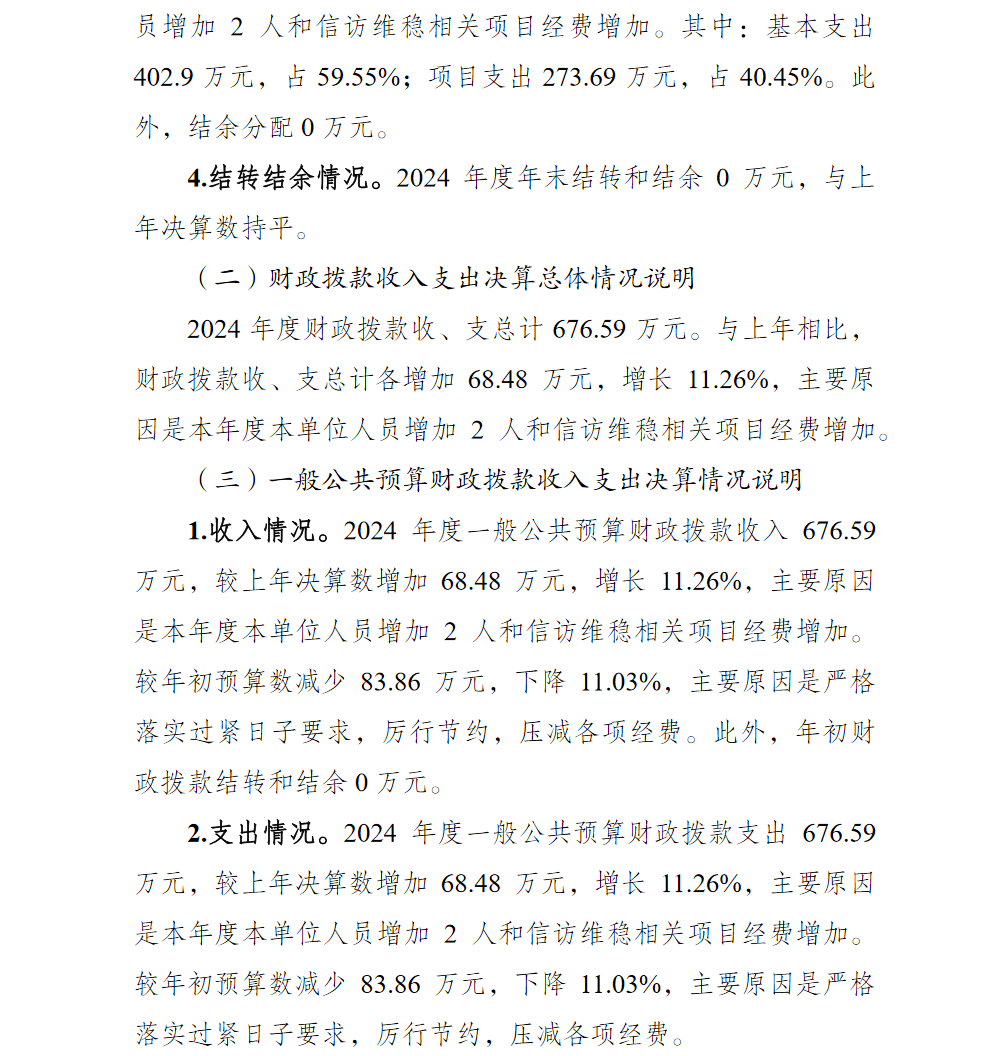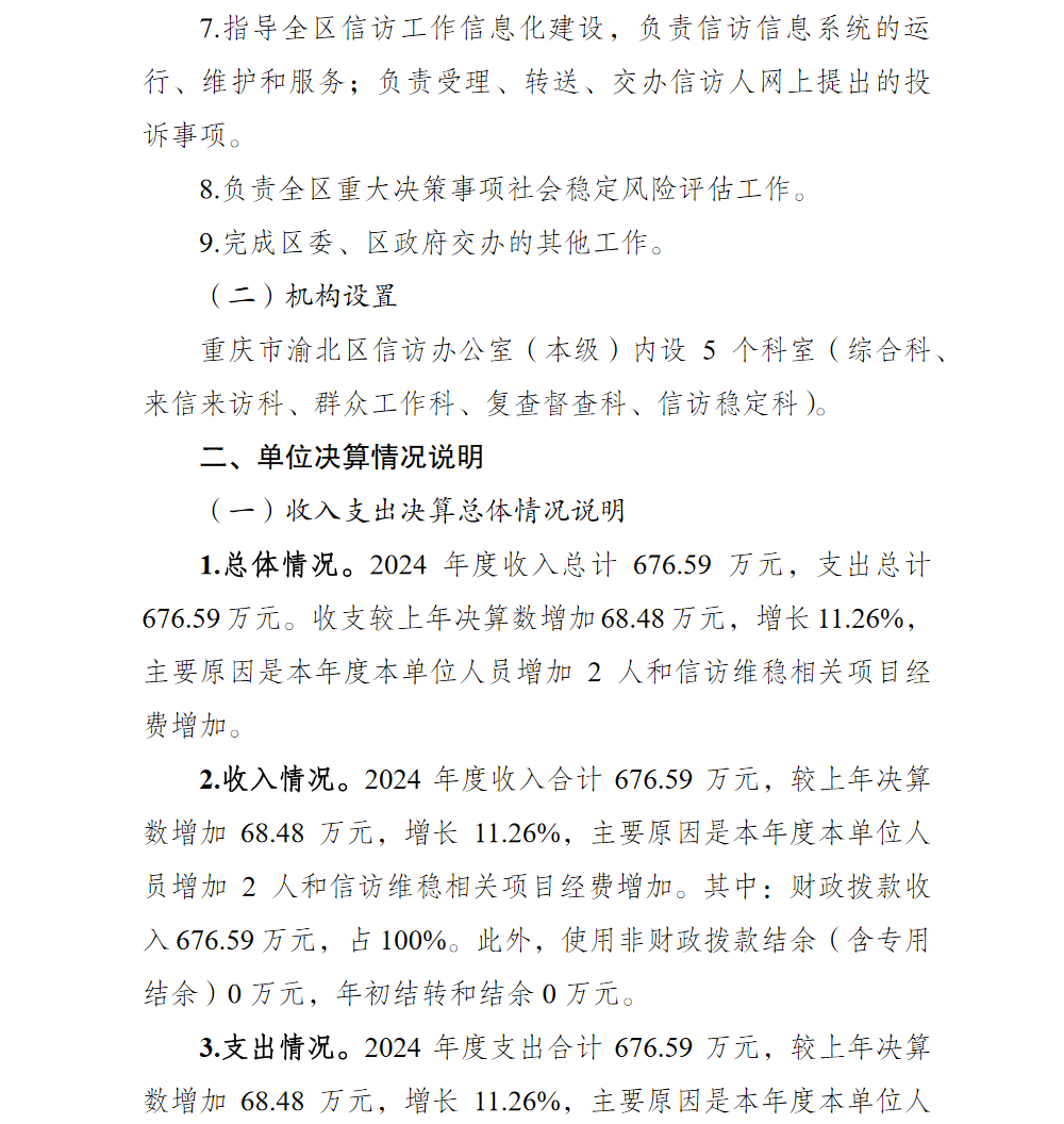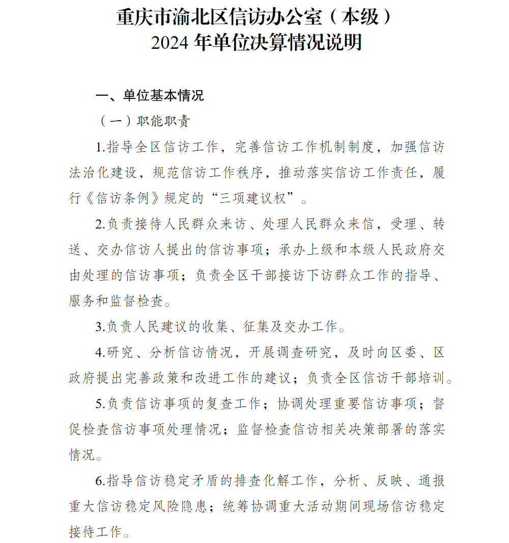 重庆市渝北区信访办公室(本级)2024年单位决算情况说明