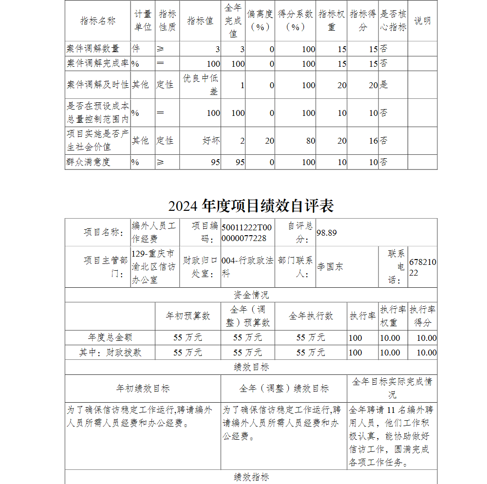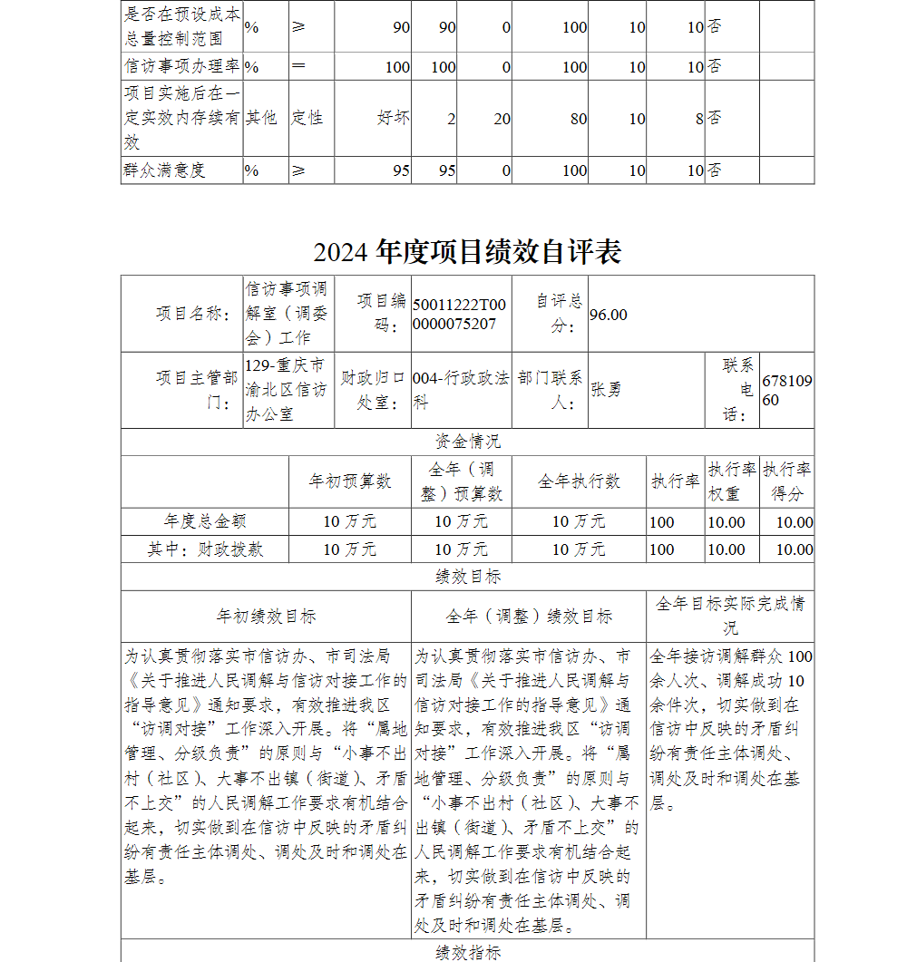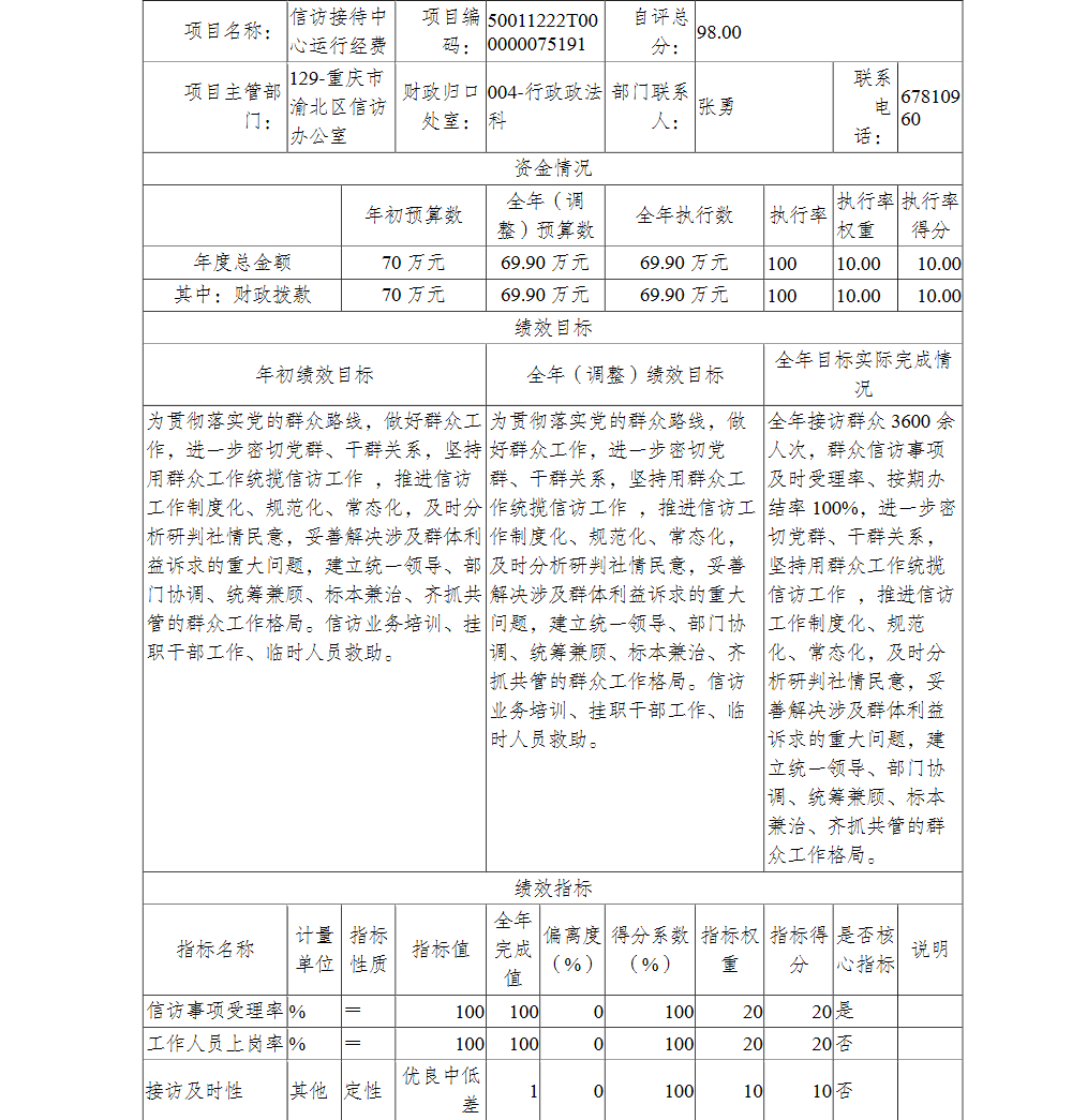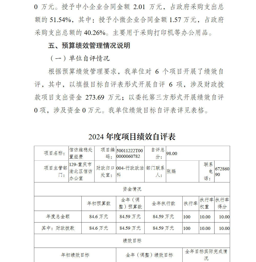 重庆市渝北区信访办公室(本级)2024年单位决算情况说明
