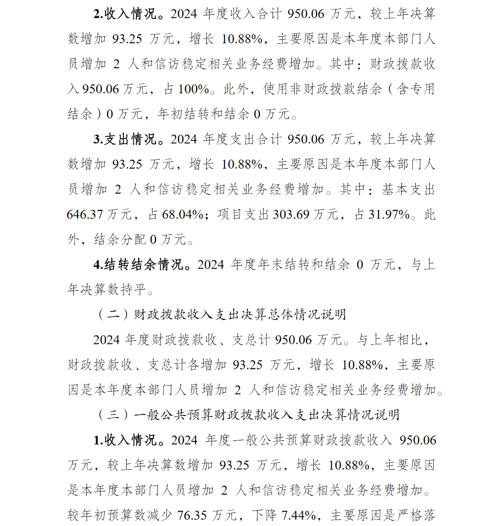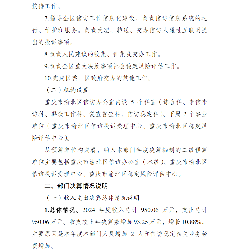 重庆市渝北区信访办公室2024年部门决算情况说明