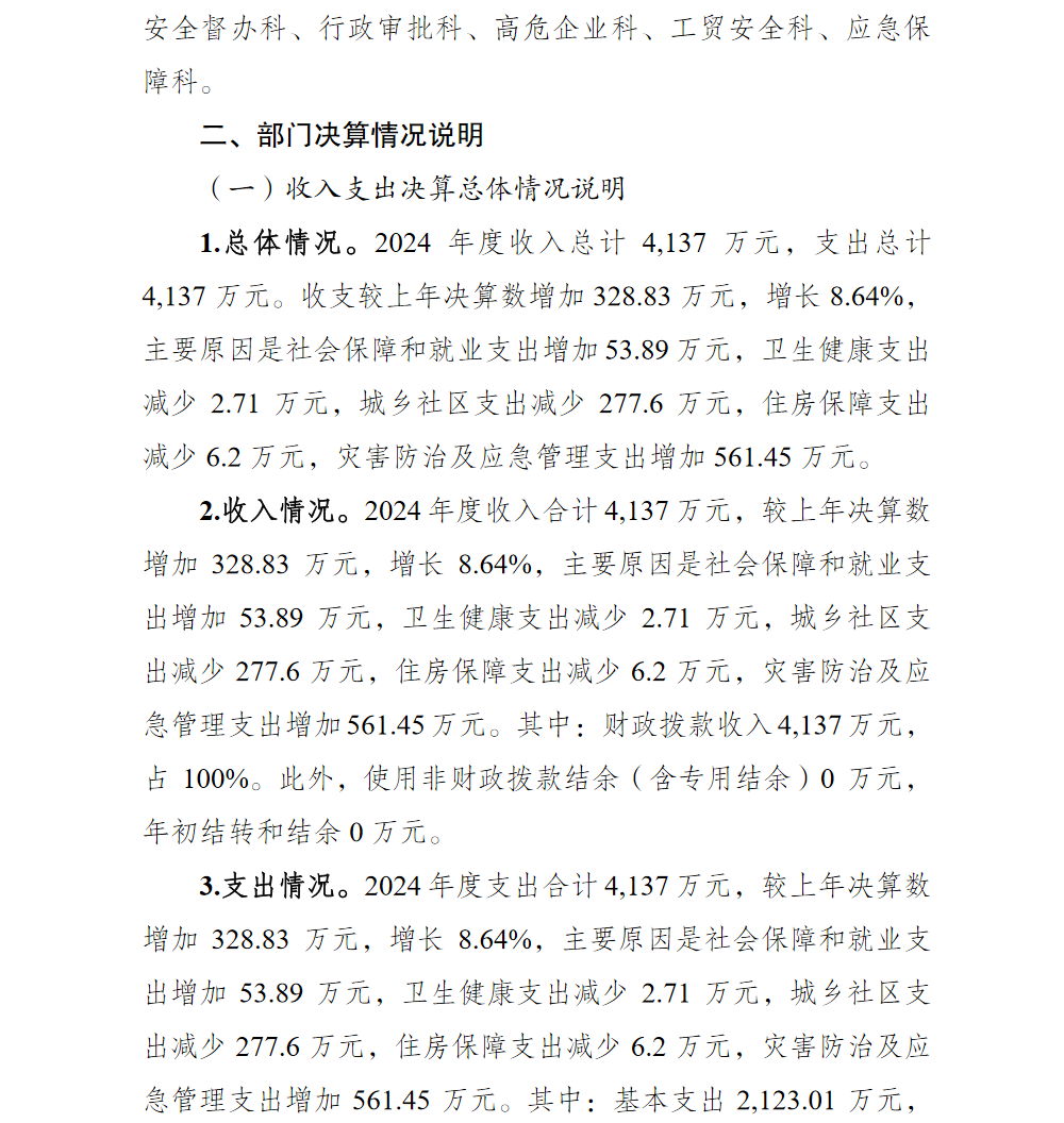 重庆市渝北区应急管理局2024年部门决算情况说明