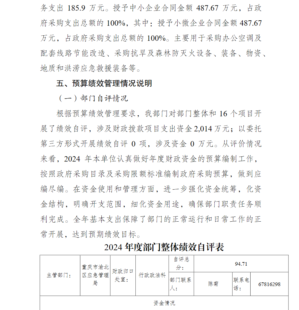 重庆市渝北区应急管理局2024年部门决算情况说明及附表.pdf