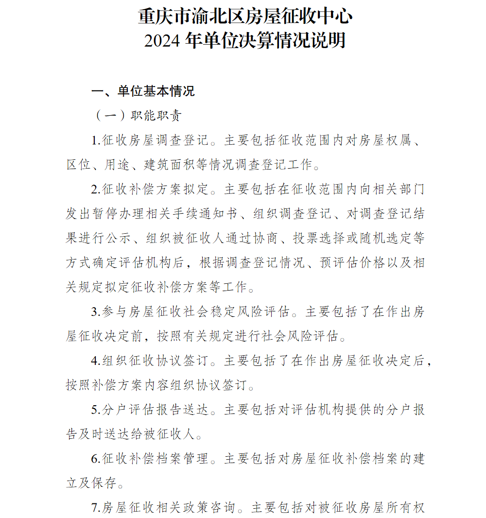 重庆市渝北区房屋征收中心2024年单位决算情况说明