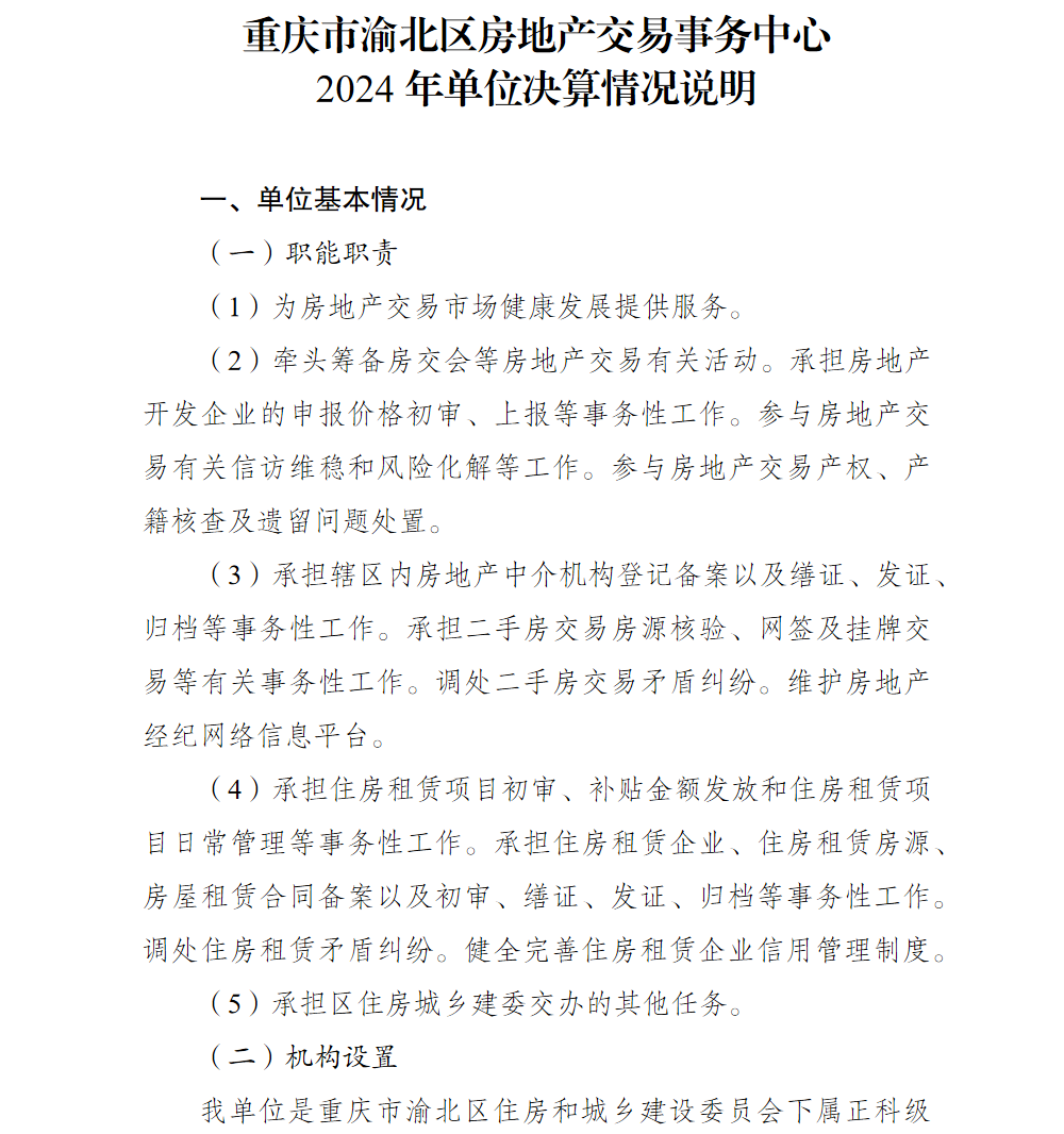 重庆市渝北区房地产交易事务中心2024年单位决算情况说明