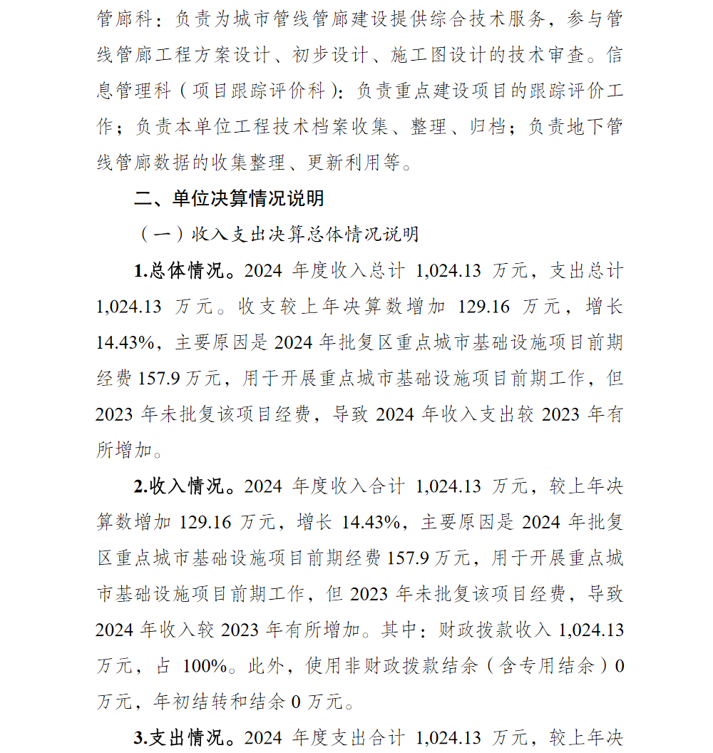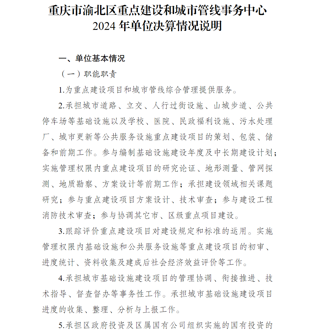 重庆市渝北区重点建设和城市管线事务中心2024年单位决算情况说明