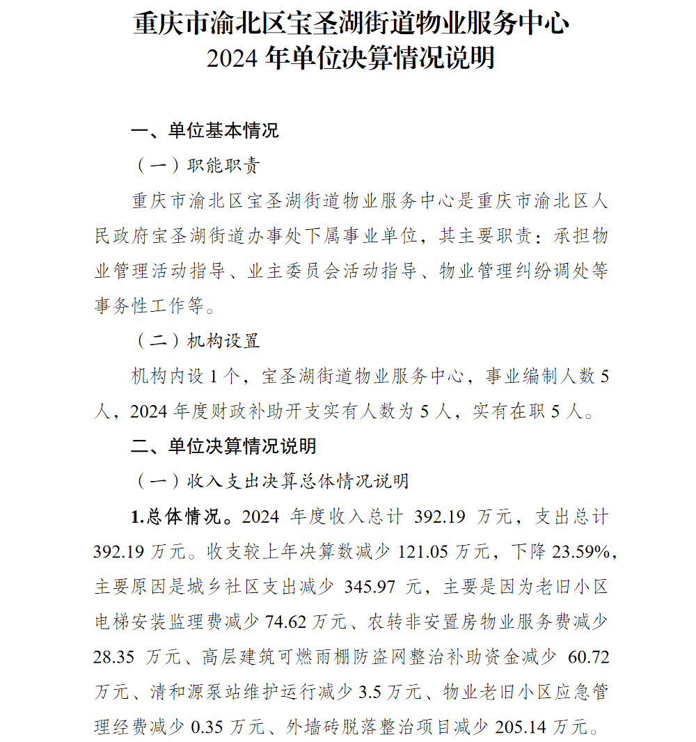 重庆市渝北区宝圣湖街道物业服务中心2024年单位决算情况说明