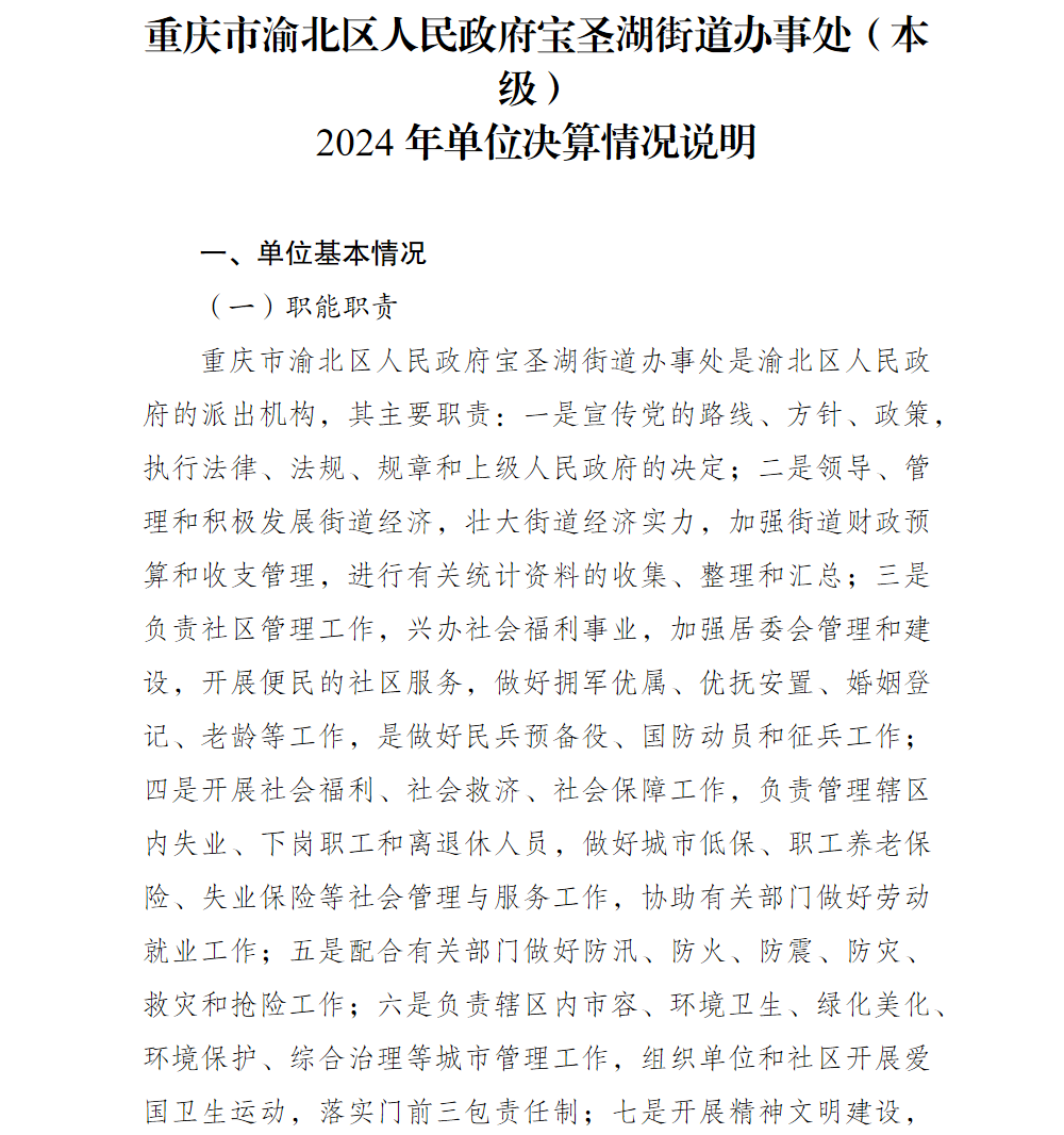 重庆市渝北区人民政府宝圣湖街道办事处(本级)2024年单位决算情况说明及附表.pdf