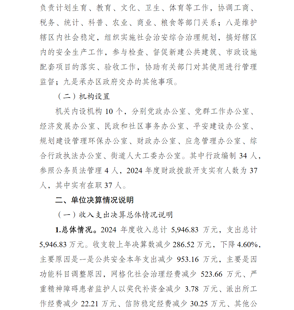 重庆市渝北区人民政府宝圣湖街道办事处(本级)2024年单位决算情况说明