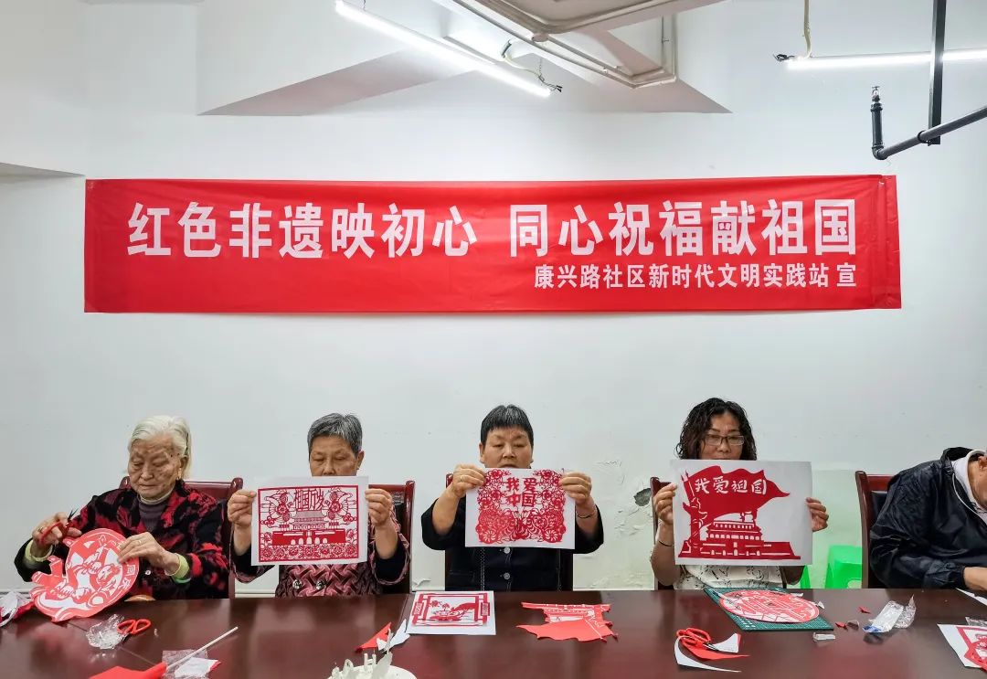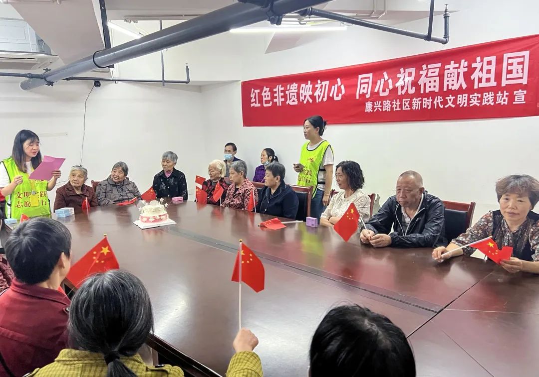 在国庆佳节到来之际,康兴路社区新时代文明实践站联合社区养老服务站,组织党员群众开展“红色非遗映初心,同心祝福献祖国”主题活动。