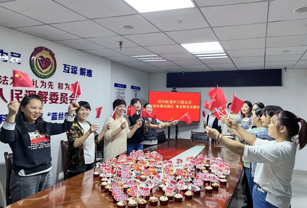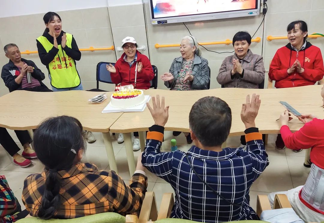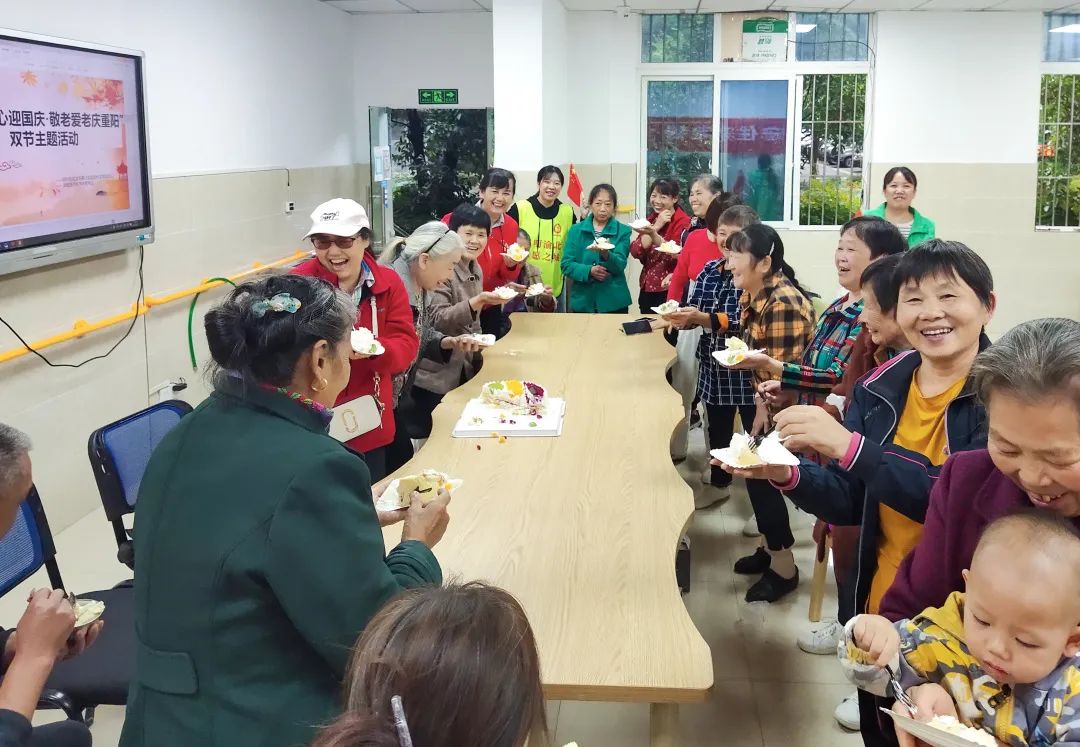 在国庆节及重阳佳节来临之际,龙石路社区新时代文明实践站联合汀香树养老服务站,在社区养老服务站开展“歌唱伟大祖国喜迎重阳佳节”主题活动。活动邀请了热心居民、党员和5位10月1日出生的老人代表欢聚一堂,一起庆祝生日。