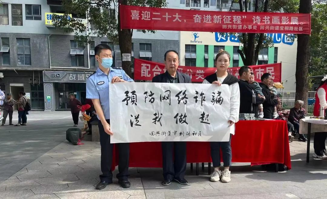 国庆节将至,宝桐路社区联合回兴街道诗书画影协会举办以“喜迎二十大,双节共欢庆”为主题的书画展览活动。