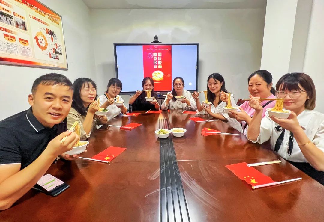 在国庆来临之际,科桐路社区组织开展“国庆吃面国泰民安”主题活动,大家围坐在桌子旁,一起吃上一碗祖国母亲的“长寿面”。