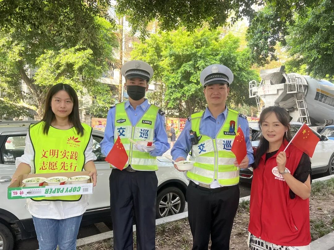 此外,志愿者们还捧着热腾腾的“国庆面”走上街头,送给坚守岗位的公安民警、环卫工人、疫情防控工作人员等。吃着小面的环卫工人说:“吃了一碗为祖国庆生的面,我们更有干劲了。我们一定会鼓足劲做好本职工作,让我们大街更干净整洁。”
