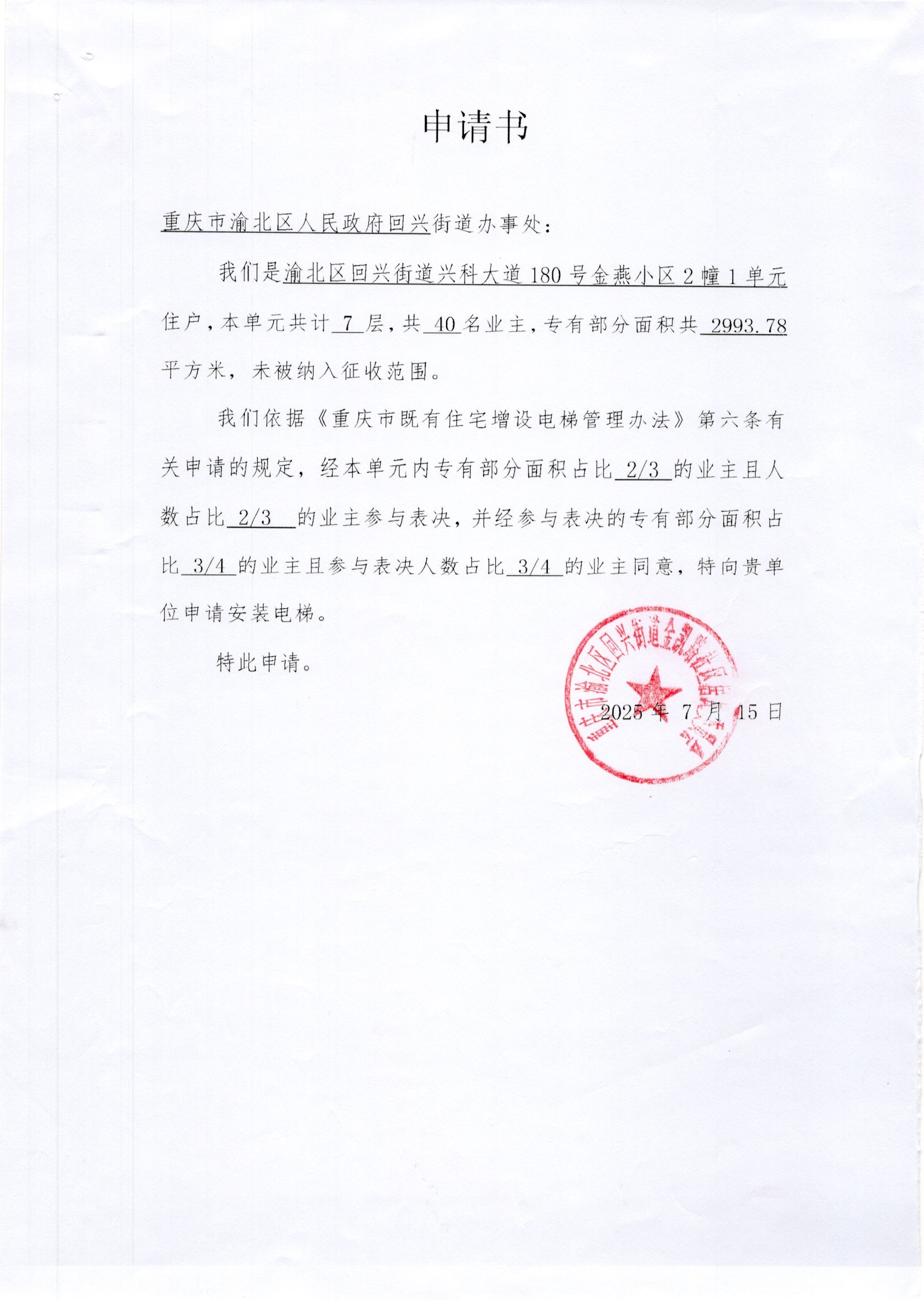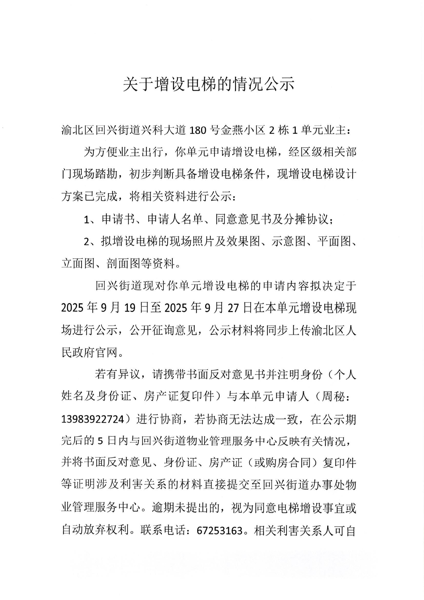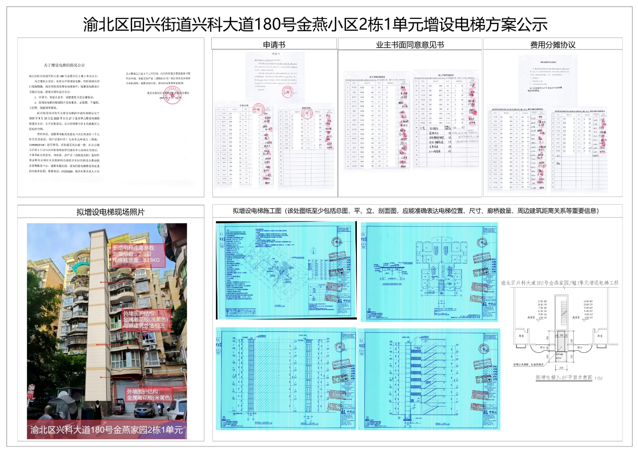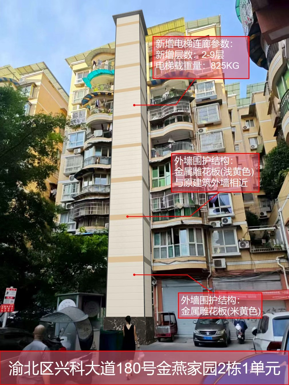 渝北区回兴街道兴科大道180号金燕小区2栋1单元增设电梯方案公示
