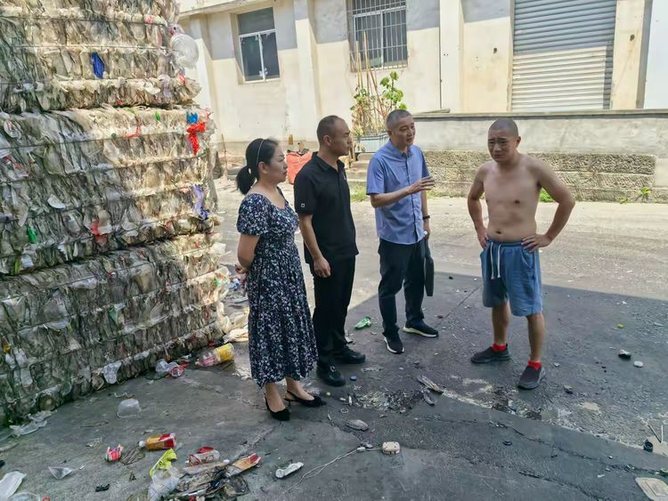 3.2025年7月28日,回兴街道纪工委书记陈金刚走访宝圣东路社区重庆津魁再生资源有限公司,陈书记首先与企业负责人沟通,了解企业基本情况、安全生产、经营状况、发放工资情况等,接着陈书记结合实际,要求企业要按照劳动法准时为员工发放工资以及购买社会保险,同时要求企业要做好夏季高温天气消防安全、员工防暑降温等工作。
