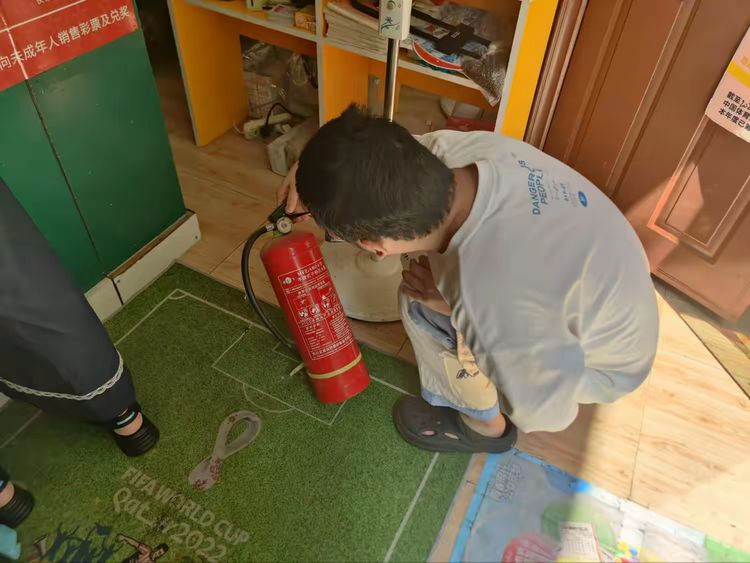 13.2025年8月14日,金凯路社区工作人员检查九小场所安全隐患。