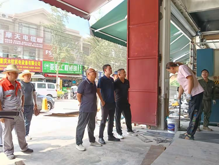 1.2025年8月27日,回兴街道党工委书记姜澜带领办事处副主任李洪波、政法委员董金津、平安法治办公室主任、应急管理岗负责人及工作人员、第三方专家前往馨兰路社区五金机电城开展安全稳定走访,首先与机电城物业公司负责人深入沟通,详细了解机电城整体运营状况、日常安全生产管理制度落实情况及微型消防站点管理维护情况。随后随机抽查市场内2家商户:重庆飞耀不锈钢制造有限公司,检查过程中,第三方专家重点检查了动火作业人员持证情况,起重设备安全使用情况等;鑫成五金经营部,检查发现有违规住人、通道狭窄、未安装防火门等安全隐患问题,结合现场情况,提出整改意见。检查结束后,姜书记听取了社区书记关于近期安全稳定工作的汇报,全面了解社区在隐患排查、矛盾调解、反诈宣传等方面的工作进展。最后,姜书记对社区和物业公司提出工作要求:一是压实主体责任,物业需切实履行管理职责,社区要强化监督指导,形成合力;二是加强隐患排查,建立常态化、网格化排查机制,对发现的隐患实行台账式管理,确保整改闭环;三是做好应急准备,完善应急预案,定期开展应急演练,提升突发情况处置能力。