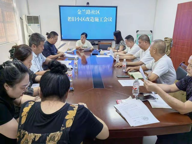 7.2025年8月28日,金兰路社区召集老旧改小区的网格长、网格员,物业负责人、施工单位现场负责人在社区会议室召开了老旧小区改造施工会议。会上,先由施工单位负责人介绍了各小区的施工范围、施工工艺及各小区施工进场时间节点;再由各小区物业负责人和网格员向施工单位提出意见和建议,做到充分沟通;最后社区书记要求施工单位要及时张贴施工公告、温馨提示、安全警示标语等,必须确&保整个改造过程中的安全,同时希望大家相互配合,确保金兰路社区的老旧改工作按时且保质保量顺利完成。