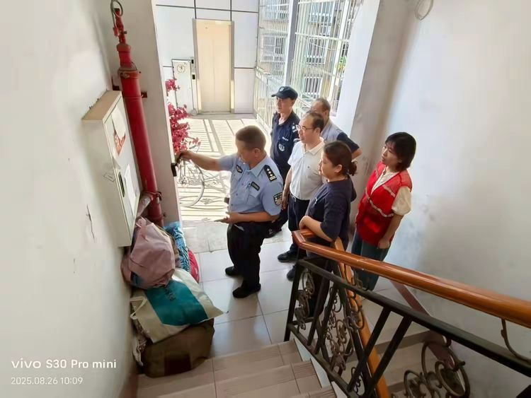 15.2025年8月26日,科兰路社区对辖区高层建筑消防设施及疏散通道等进行检查。