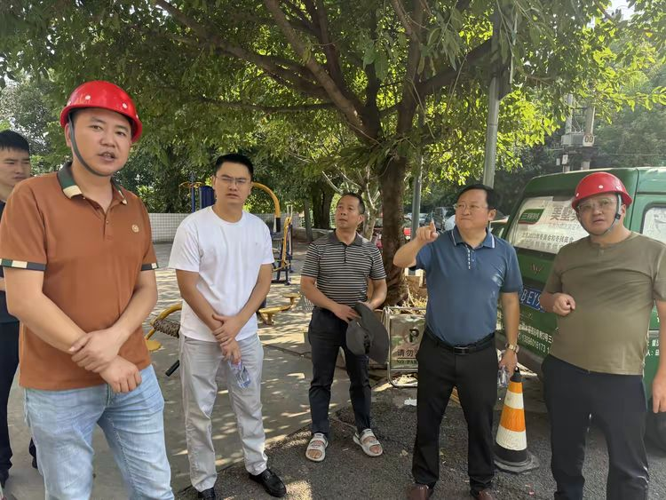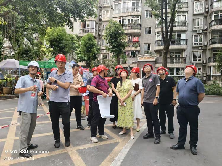 5.2025年9月2日上午,街道人大工委主任高军带领城市更新专班一行人对辖区的3个老旧小区片区改造项目进行了安全检查。高主任在双桐和中医院集资楼片区项目施工现场检查后强调,现在处于特殊时期,请施工单位一定要加强人员安全管理,注意施工和过往行人安全,各监管人员积极履好职,专班人员每天到项目检查安全和人员到位履职情况。最后走访了化家湾片区项目的改造情况,对发现的各种小问题要求施工单位立即整改,现场查看了富宏苑小区内居民提出的部分老旧路灯不亮问题后,高主任要求物业公司在本周内修复好,专班人员给予适当协助。