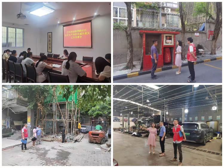 14.2025年9月2日上午,科桐路社区组织全体社区干部、网格员召开了安全生产和防灾减灾救灾工作部署会。会后,在社区书记的带领下,网格员即刻深入加气站、驰骋厂、餐饮门店、汽修店等各类经营场所,重点检查消防设施有效性、电气线路规范性、安全出口畅通情况以及燃气使用安全等内容。针对发现的灭火器过期、消防通道被占用等问题,现场下达整改通知书,明确了整改要求与期限,督促企业整改。此外,针对老旧小区存在的楼道堆积杂物、电动车飞线充电、电梯维护等安全隐患,网格员立即联系相关居民、物业公司及时清理、整改,同时要求物业公司加强巡查,发现问题及时整改。