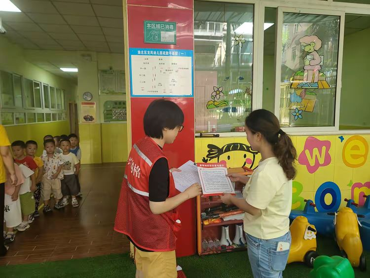 12.2025年9月2日下午,回兴街道民政事务岗对辖区内的七彩阳光幼儿园进行了专项安全检查。检查小组一行重点查看了幼儿园的消防设施设备是否完好有效、疏散通道和安全出口是否保持畅通、用火用电管理是否规范以及厨房食堂的食品储存、加工制作、留样等环节是否符合安全标准。董科长强调,幼儿园是幼儿集中活动的场所,消防安全和食品安全是重中之重,园方必须严格落实主体责任,加强日常自查自纠,确保各项安全措施执行到位,为孩子们营造一个绝对安全、健康的成长环境。