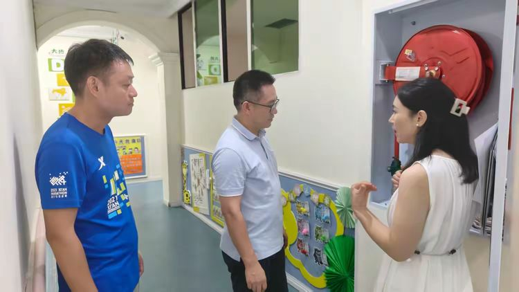 3.2025年9月10日,回兴街道办事处副主任李洪波带领应急管理岗工作人员、龙石路社区书记和网格员深入辖区内幼儿园开展消防安全与食品安全专项检查。李主任现场查看园内情况,了解应急处置能力建设情况,重点督导各园落实常态化防控机制,并就强化安全宣传教育、提升从业人员专业技能方面提出具体要求。后续,社区将持续深化相关工作,切实筑牢校园安全防线。