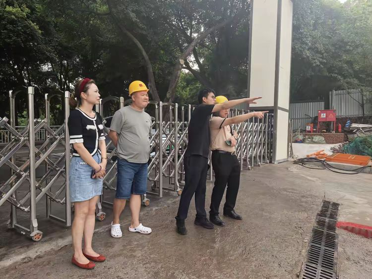 7.2025年9月11日,回兴街道办事处副主任刘言带领建设管理岗负责人、第三方安全专家等对羽裳路社区重庆美智子服饰有限公司开展安全检查,旨在进一步规范辖区企业装饰、装修行为,保障施工安全。刘主任深入施工现场,针对装修工程的各个环节进行细致检查,重点提醒企业在未取得备案许可之前,立即停止一切装修动工行为,同时,恢复装修后,企业要切实履行安全主体责任,强化施工现场安全管理工作,完善安全防护设施,确保施工过程安全有序。