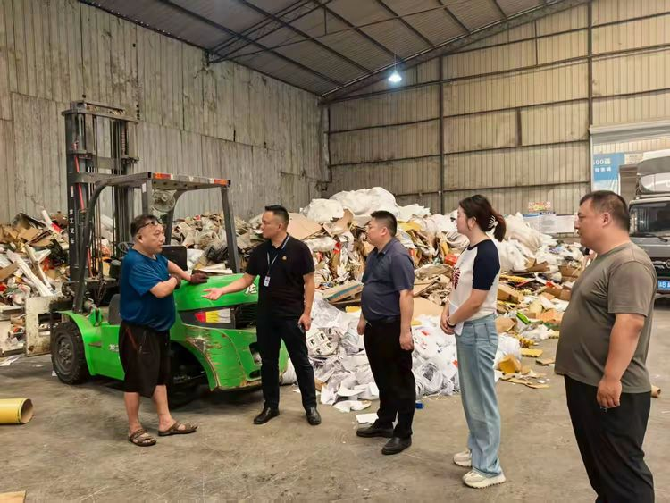 8.2025年9月10日,回兴街道综合行政执法大队负责人、应急管理岗负责人、经济发展办公室及回兴市场监督管理所等一行对羽裳路辖区重庆鑫汶再生资源回收有限公司开展了安全生产综合执法,现场检查出消火栓被遮挡、消防通道堆放杂物等安全隐患,责令企业负责人立即进行整改,社区将继续对辖区再生资源行业进行安全巡查,督促企业及时整改消除安全隐患。