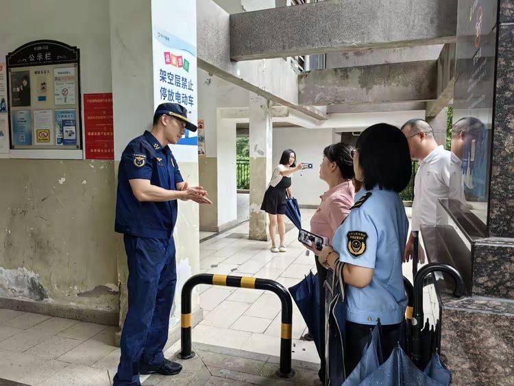 9.2025年9月12日,双桐路社区联合市政执法大队、市场监管所、区消防支队以及物业公司在旭辉小区开展电动自行车安全隐患排查整治行动。检查组现场就电动自行车使用规范和消防安全管理规定进行讲解,要求架空层和地下车库内每组充电车位不应超过20个,各组之间的间距不应小于2m,在架空层以及地下车库增设消防喷头,隔断场所,加增防火门。强调有关场所负责人要严格落实主体责任,落实整改措施,坚决杜绝违法情况发生。