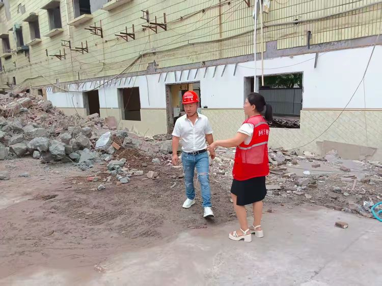 6.2025年9月11日,回兴街道办事处副主任刘言带领建设管理岗负责人和第三方安全专家对双湖路辖区重医附三院二期在建工地开展安全及湿法作业专项检查,并对上周检查发现的问题整改情况进行现场复查。刘主任强调,要进一步强化工地安全管理,确保施工符合环保及安全生产规范。接下来,社区将持续跟踪整改落实情况,筑牢施工安全防线。