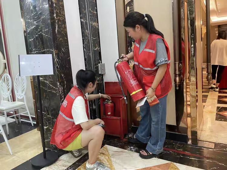 2.2025年9月9日,回兴街道办事处副主任李洪波带领应急管理岗工作人员到宝圣东路社区君畅汽车租赁有限公司进行安全检查。现场发现2个问题:一是防烟面具过期,二是灭火器点检记录未及时更新。接下来,社区将监督企业及时整改存在问题。