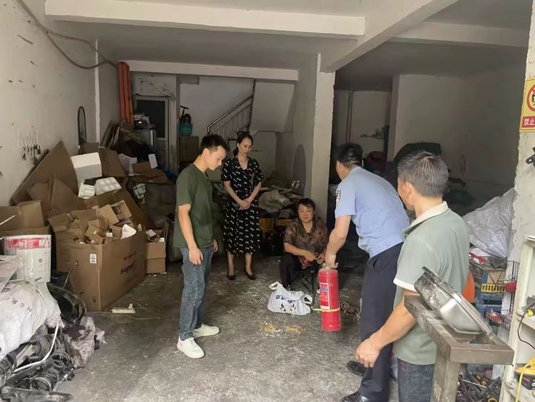 11.2025年9月11日下午,馨兰路社区联合双龙消防站、机电城物业公司,针对机电城市场内道路堵塞路段开展消防车通行能力专项测试。期间,社区网格员与物业工作人员同步行动,对周边商户进行现场劝导,重点宣传乱堆货物的安全隐患,引导商户规范堆放,保障道路通行畅通。