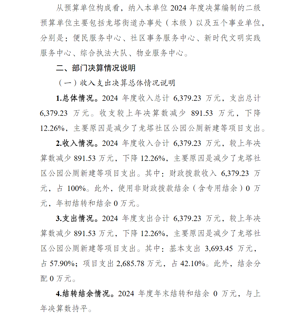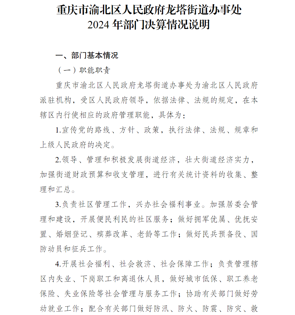 重庆市渝北区人民政府龙塔街道办事处2024年部门决算情况说明