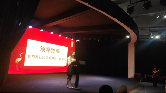 活动伊始,紫荆路社区党委书记汪春美登台致辞,她表示,此次汇演不仅是社区居民共庆双节的文化盛宴,更是党建引领下金融安全宣传与清廉文化建设的创新实践,希望通过喜闻乐见的文艺形式,让防非反诈知识深入人心,让清廉之风、团圆之乐浸润社区。