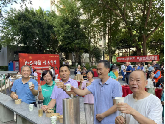 节日期间,各社区特别关注老年人等特殊群体,开展了一系列暖心服务。紫园路社区新时代文明实践站联合养老服务站开展迎双节活动,特别邀请独居老人参与,并安排志愿者一对一陪伴互动;龙盛社区新时代文明实践站举办文艺表演与茶话会,为40余名老人送上节日祝福;红土地社区新时代文明实践站开展系列敬老活动,弘扬中华民族尊老爱老传统美德。这些活动让特殊群体真切感受到社区的关怀与温暖;龙塔社区新时代文明实践站联合物业举办“槐香聚邻里・共品团圆味”百家宴活动,百余居民欢聚一堂,品美食、赏节目、话家常,其乐融融。