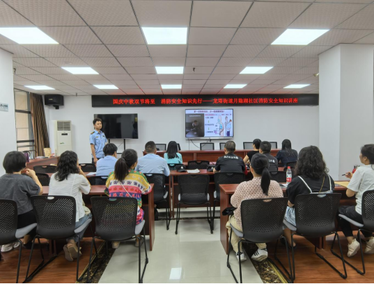 在欢庆佳节的同时,街道不忘筑牢安全防线,强化思想引领。龙塔街道商会举办“庆双节·话法治·促发展”主题活动,提升企业合规经营意识;紫园路社区工作人员提前与各小区物业负责人沟通,明确消防安全保障要求,随后迅速组织开展节前消防安全专项检查行动,以“提前部署+实地排查”的方式,切实消除安全隐患,保障辖区居民度过一个平安祥和的节日,织密节日安全防护网;月隐湖社区新时代文明实践站开展消防安全知识讲座和隐患排查,确保居民平安过节;鲁能西路社区党委、新时代文明实践站组织党员观看历史题材电影,开展“铭记历史守初心·砥砺奋进担使命”主题观影活动,激励党员干部担当作为。