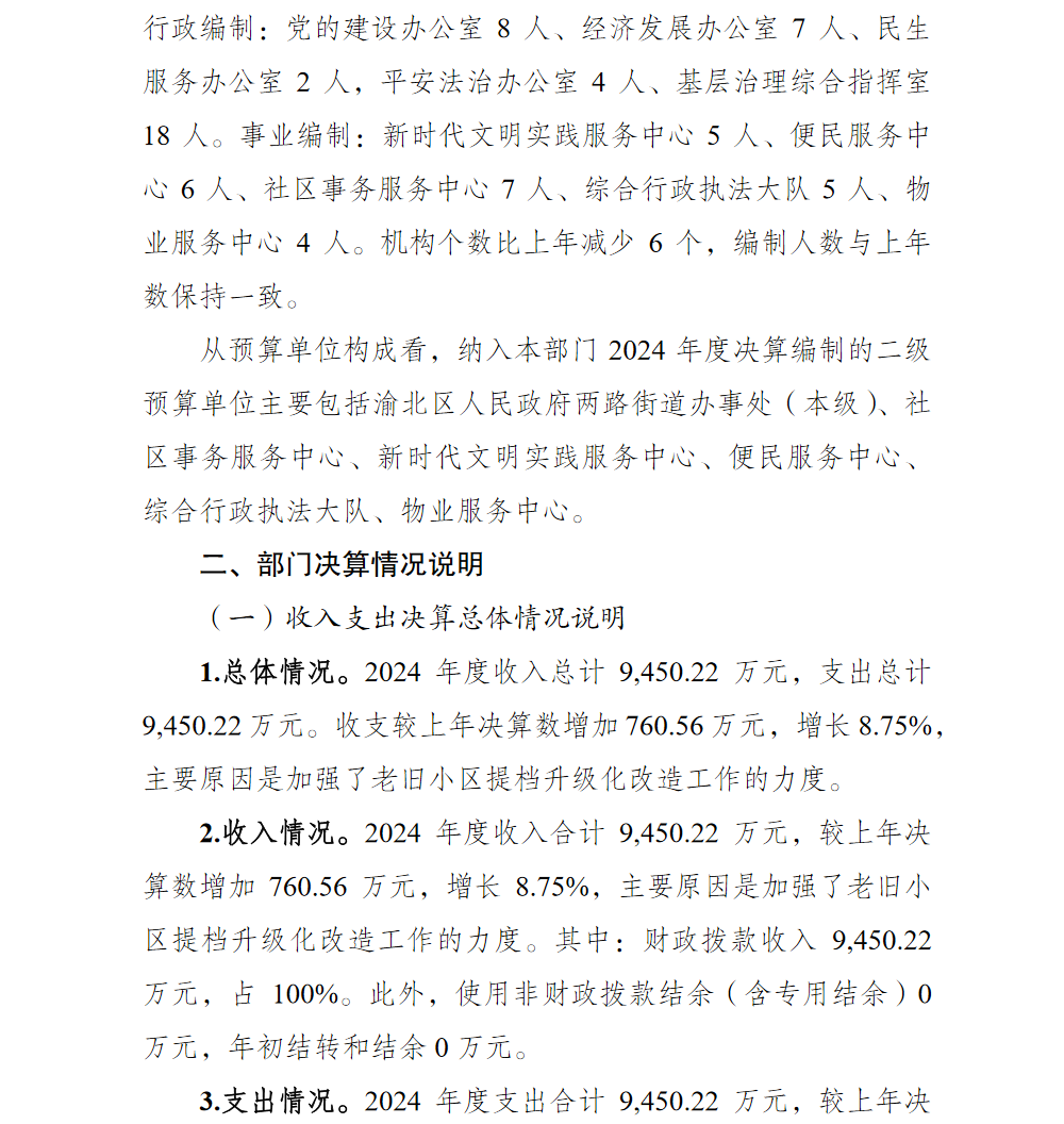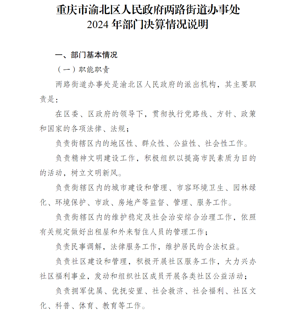 重庆市渝北区人民政府两路街道办事处2024年部门决算情况说明