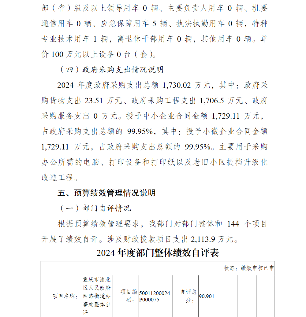 重庆市渝北区人民政府两路街道办事处2024年部门决算情况说明及附表.pdf