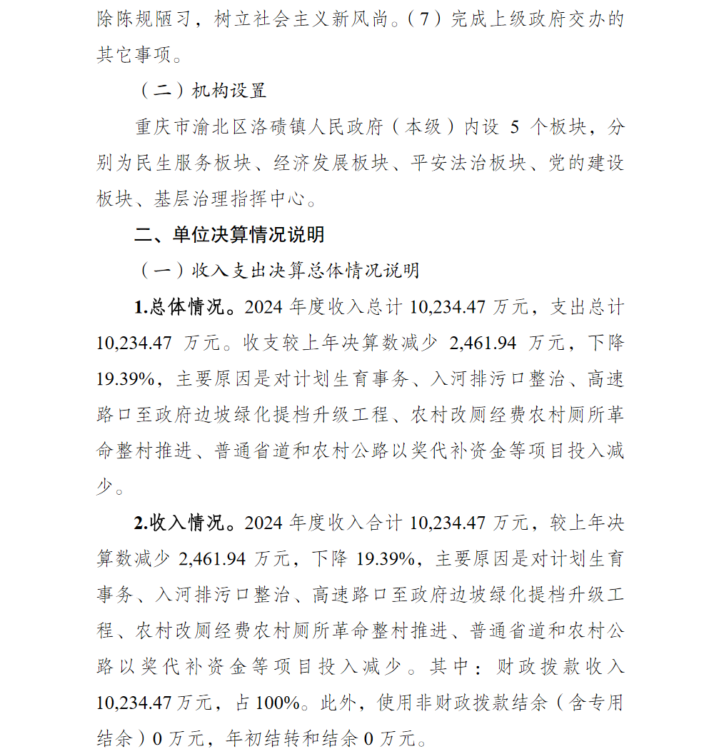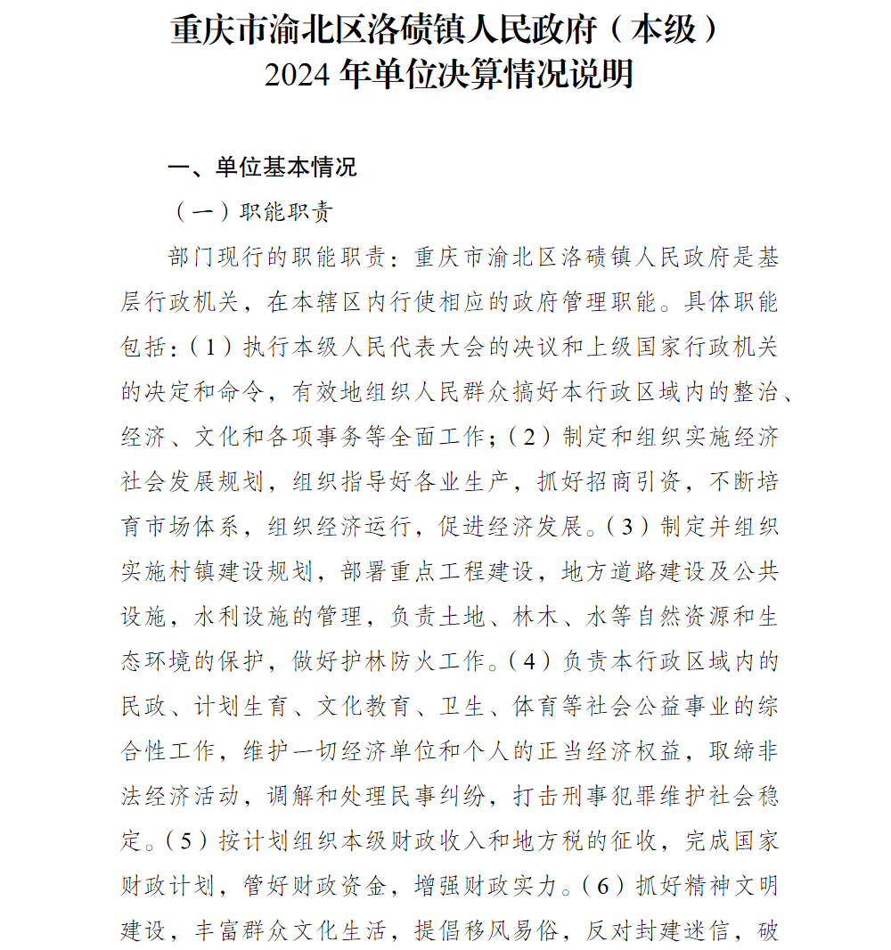 重庆市渝北区洛碛镇人民政府(本级)2024年单位决算情况说明