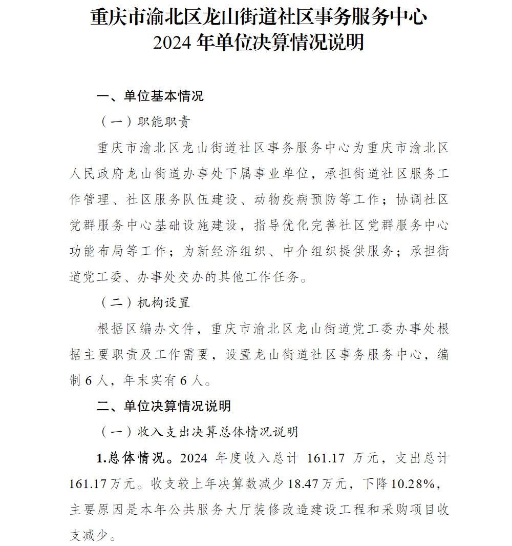 重庆市渝北区龙山街道社区事务服务中心2024年单位决算情况说明